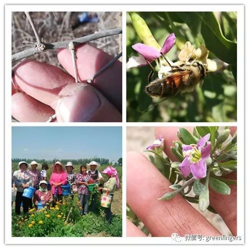 春季给枸杞植株进行剪枝,保证主枝条的营养供给。剪枝是个耐心活,枸杞枝条上带着刺,即便剪枝条时戴了防护手套,还是难免会被刺伤。所以村民都不愿意干剪枝的活,要价很高。
