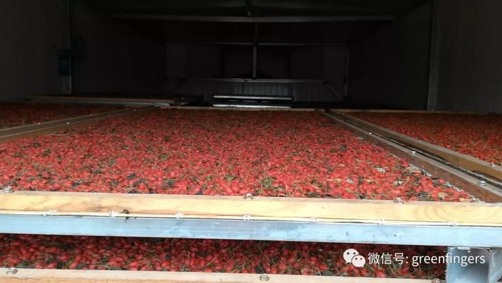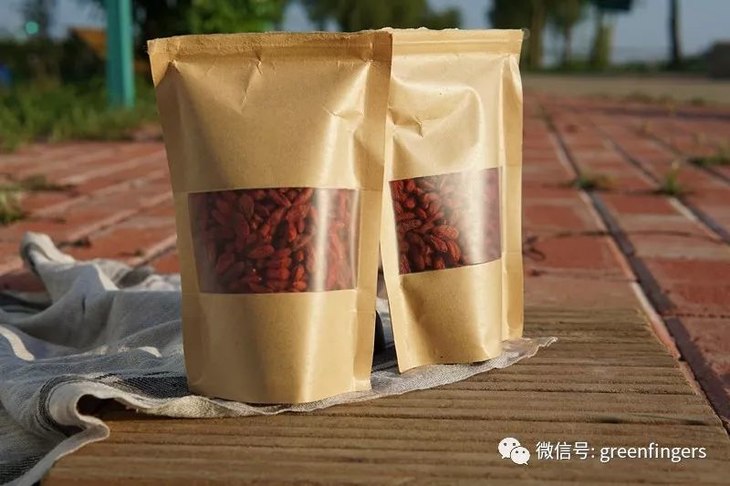 小小颗的枸杞使用人工采摘,是个费工的事情。采摘下来的枸杞用食用碱破蜡,清洗,热风烘干,就可以进行人工脱把吹叶。最后经过色选机色选,得到均匀的无破损的枸杞子,就可以装袋打包了。