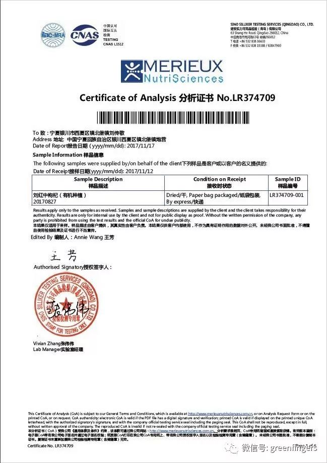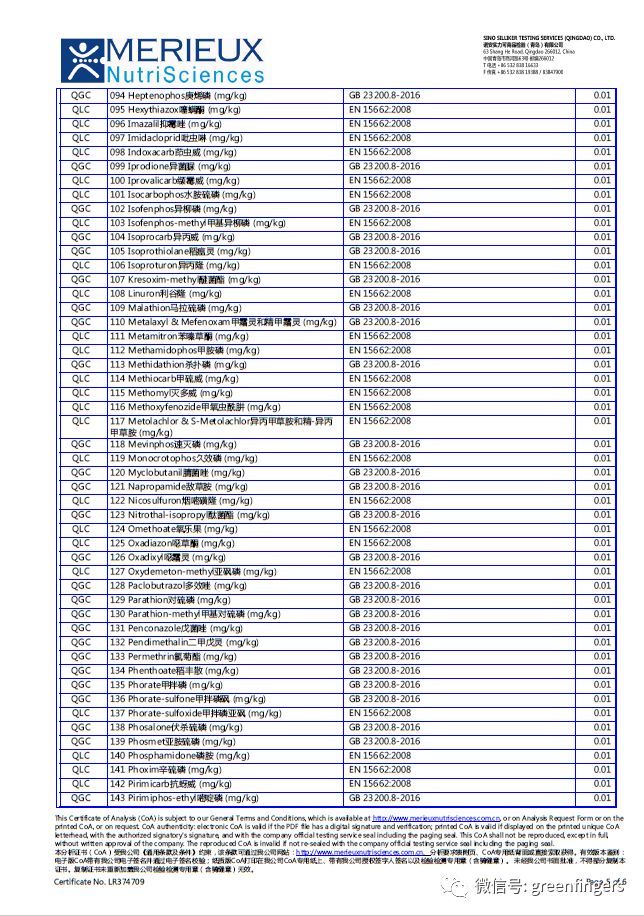 为了验证有机种植是否有效,刘大哥对枸杞进行了190项农残检测报告,全部项目均零检出(左右滑动可查看明细):
