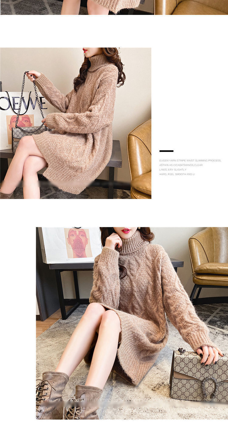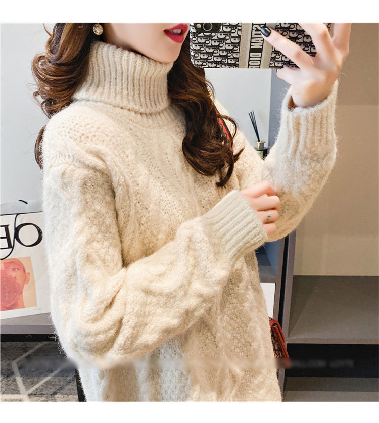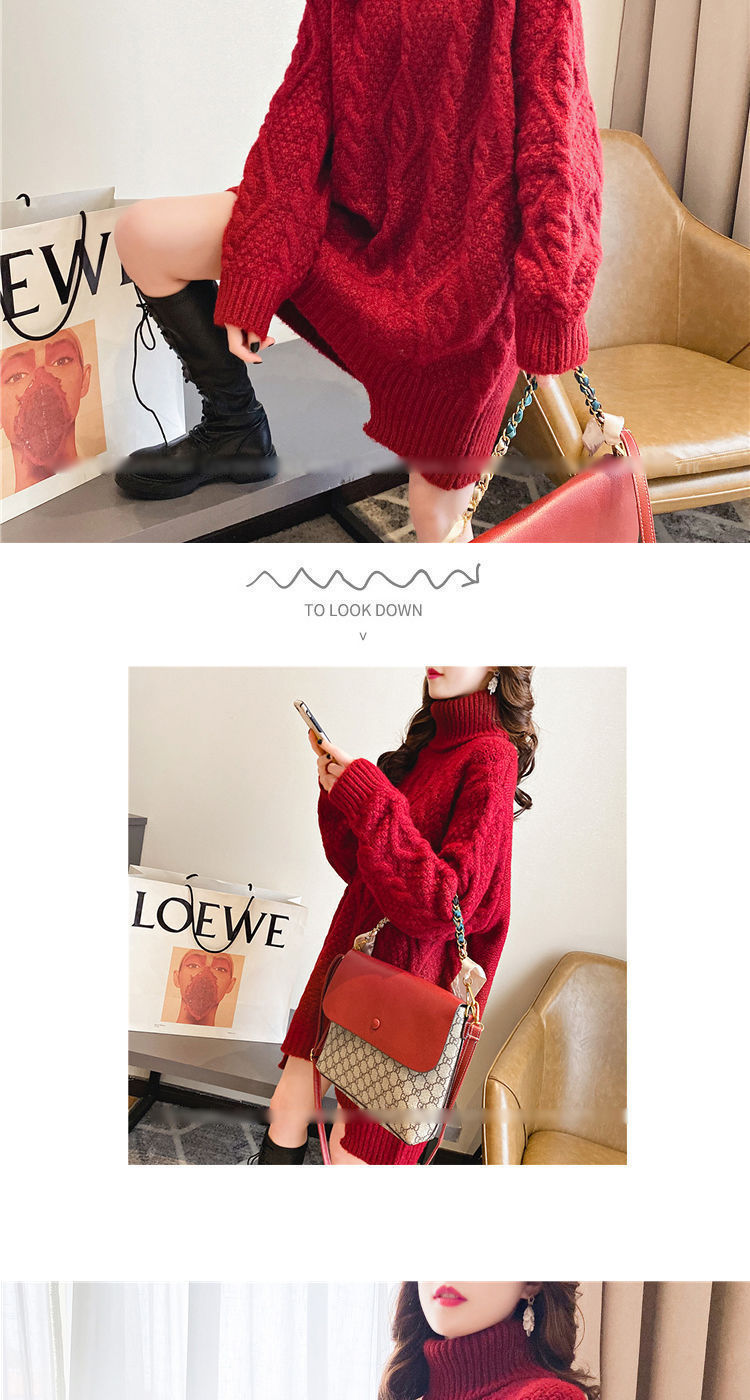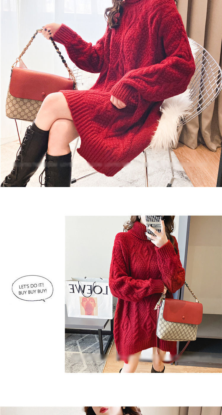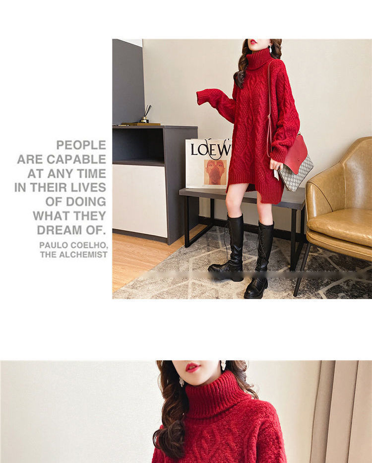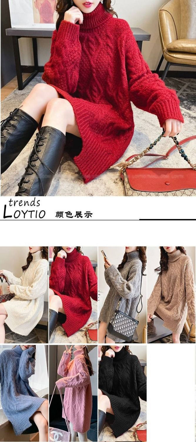 CSH-1700高领毛衣女2023新款秋冬加厚宽松外穿韩版套头中长款红色针织上衣