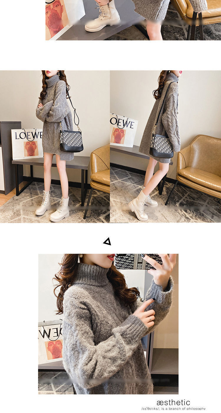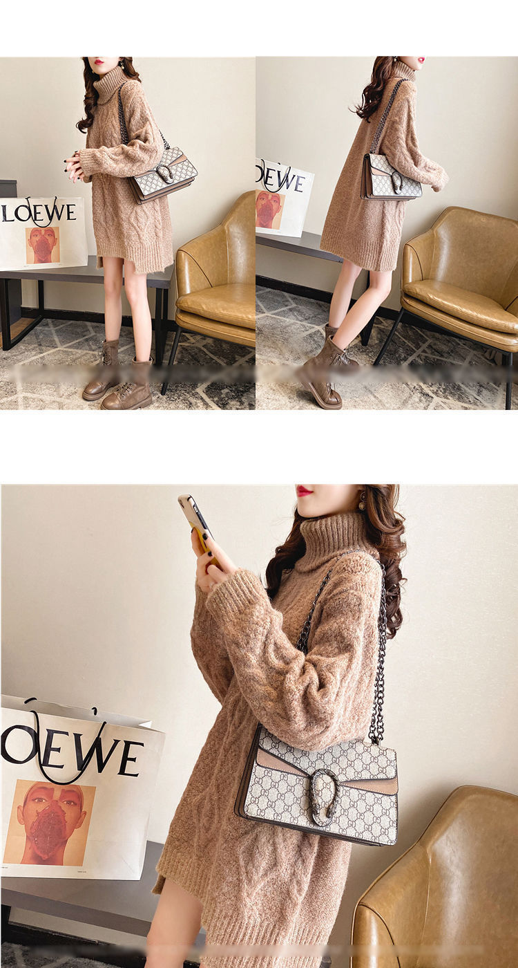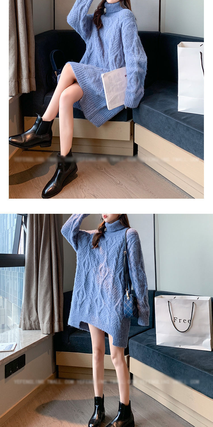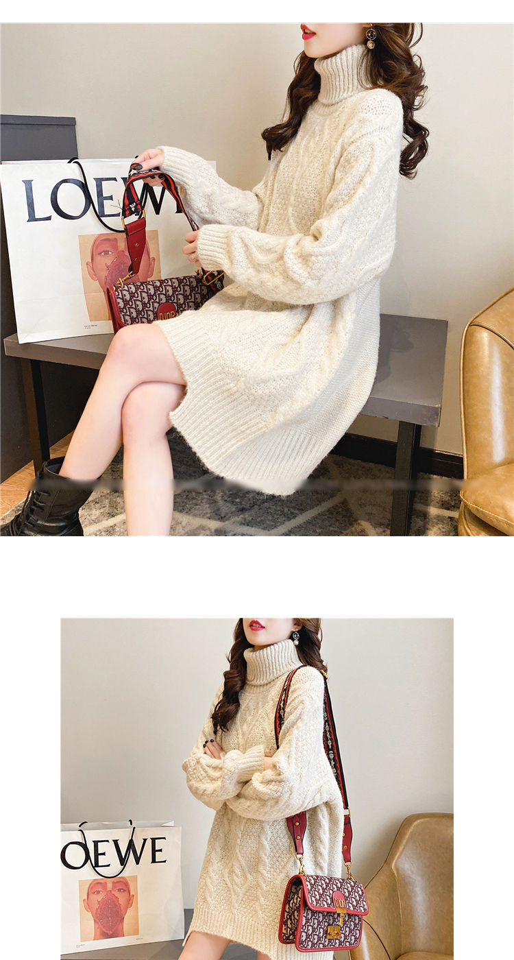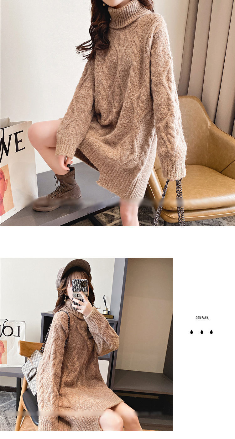 CSH-1700高领毛衣女2023新款秋冬加厚宽松外穿韩版套头中长款红色针织上衣