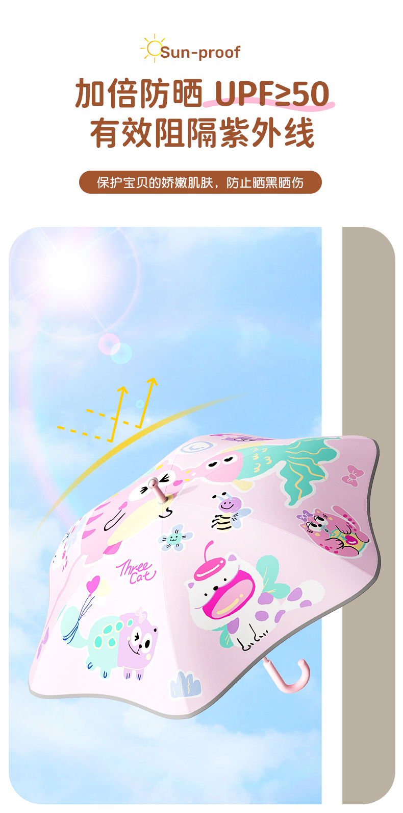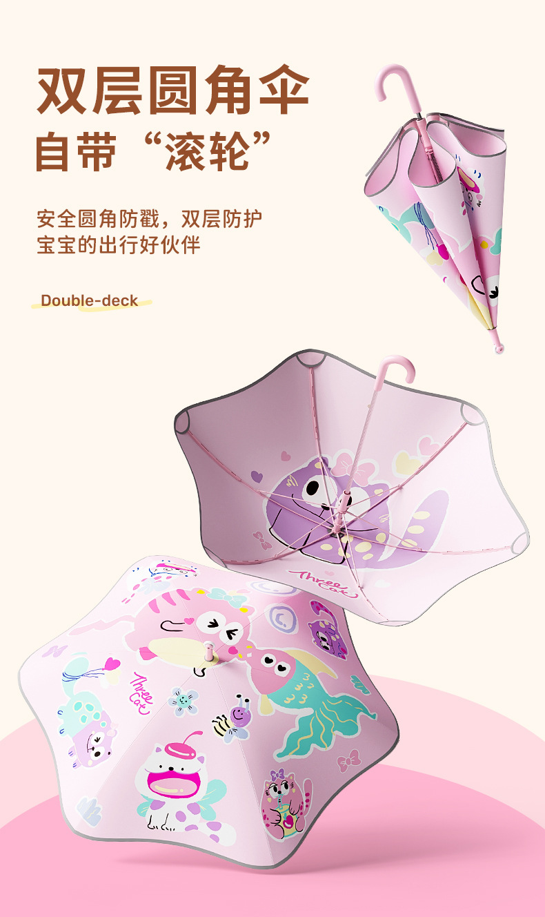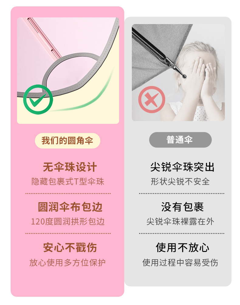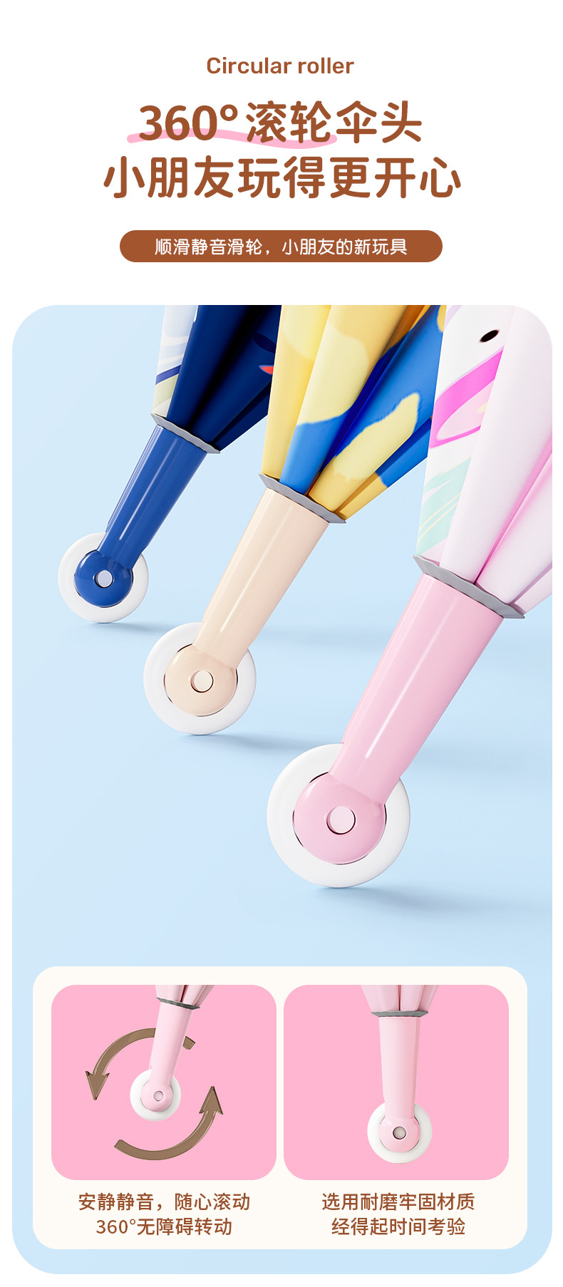 【圆角防戳!自带滚轮】轮滑安全圆角儿童伞晴雨伞幼儿园黑胶遮阳长柄伞。xa