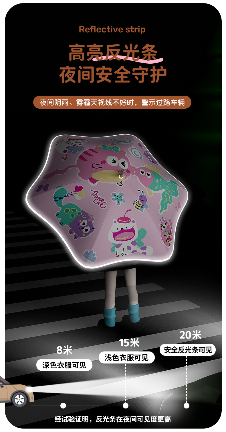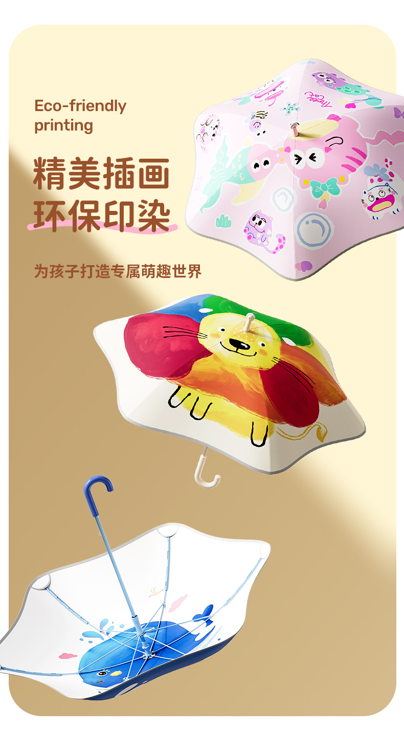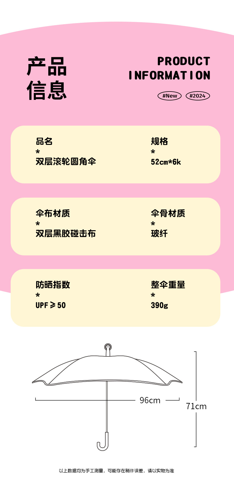 【圆角防戳!自带滚轮】轮滑安全圆角儿童伞晴雨伞幼儿园黑胶遮阳长柄伞。xa