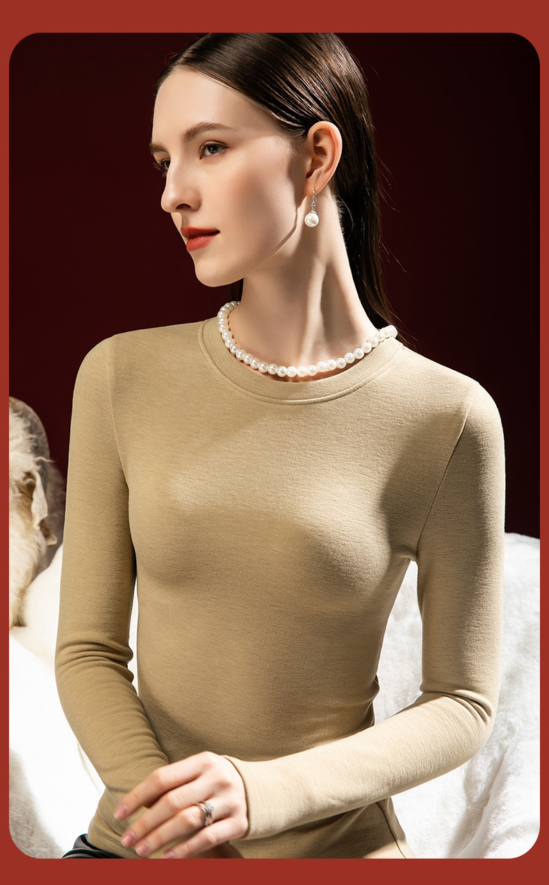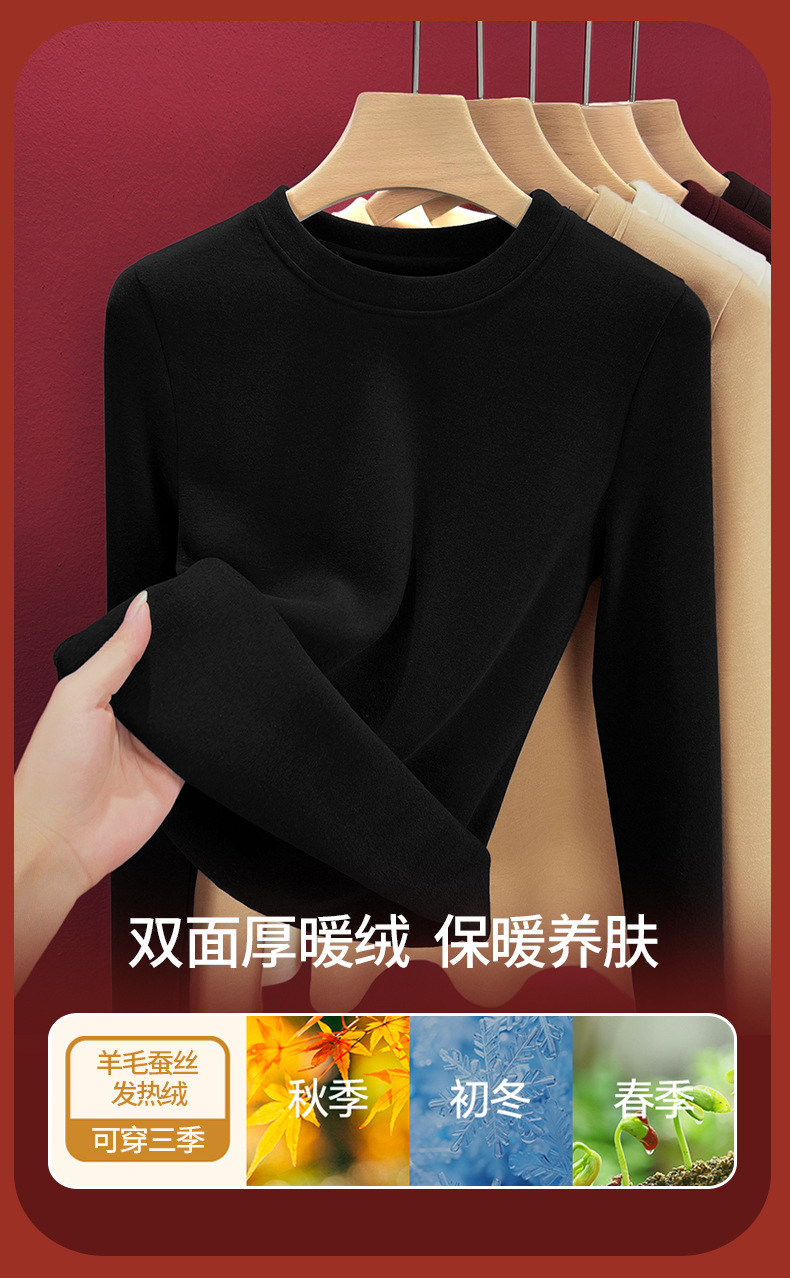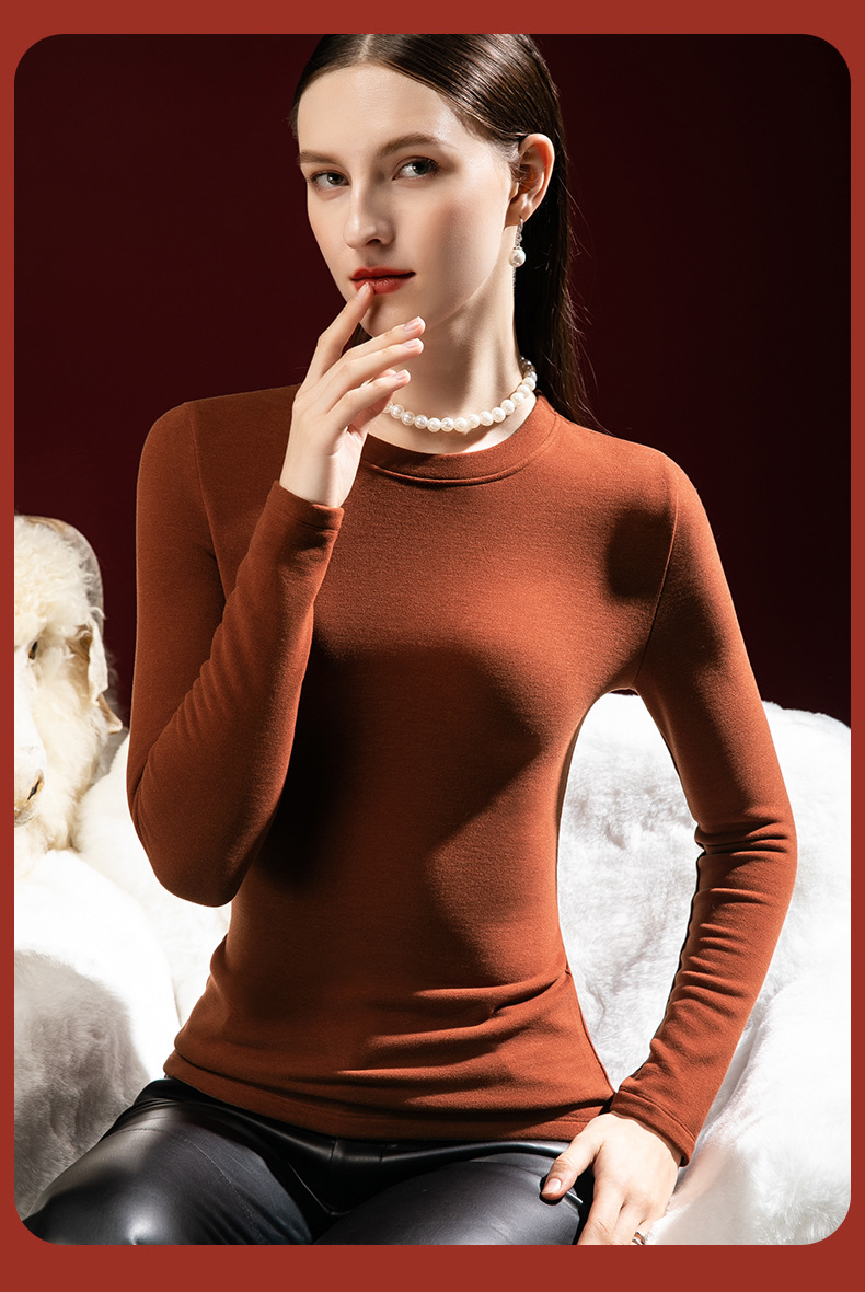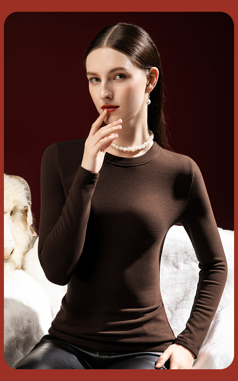 「自」全新升级【铂金会员146/天猫189/差价43】(63206)洛诗琳羊毛蚕丝加厚绒圆领打底衫2025秋冬百搭加绒保暖上衣