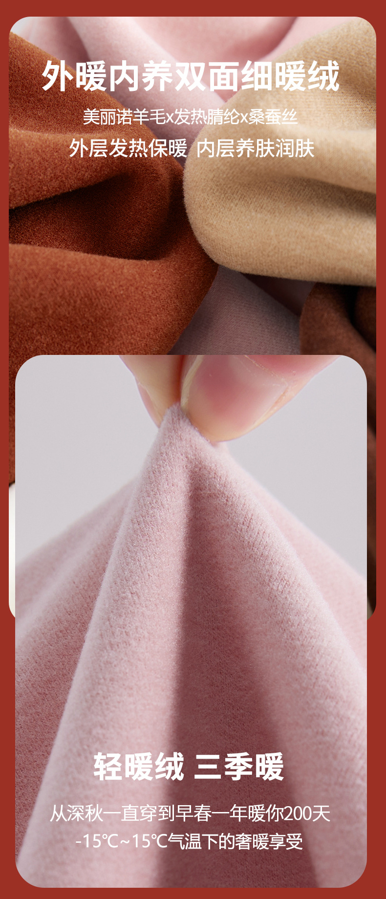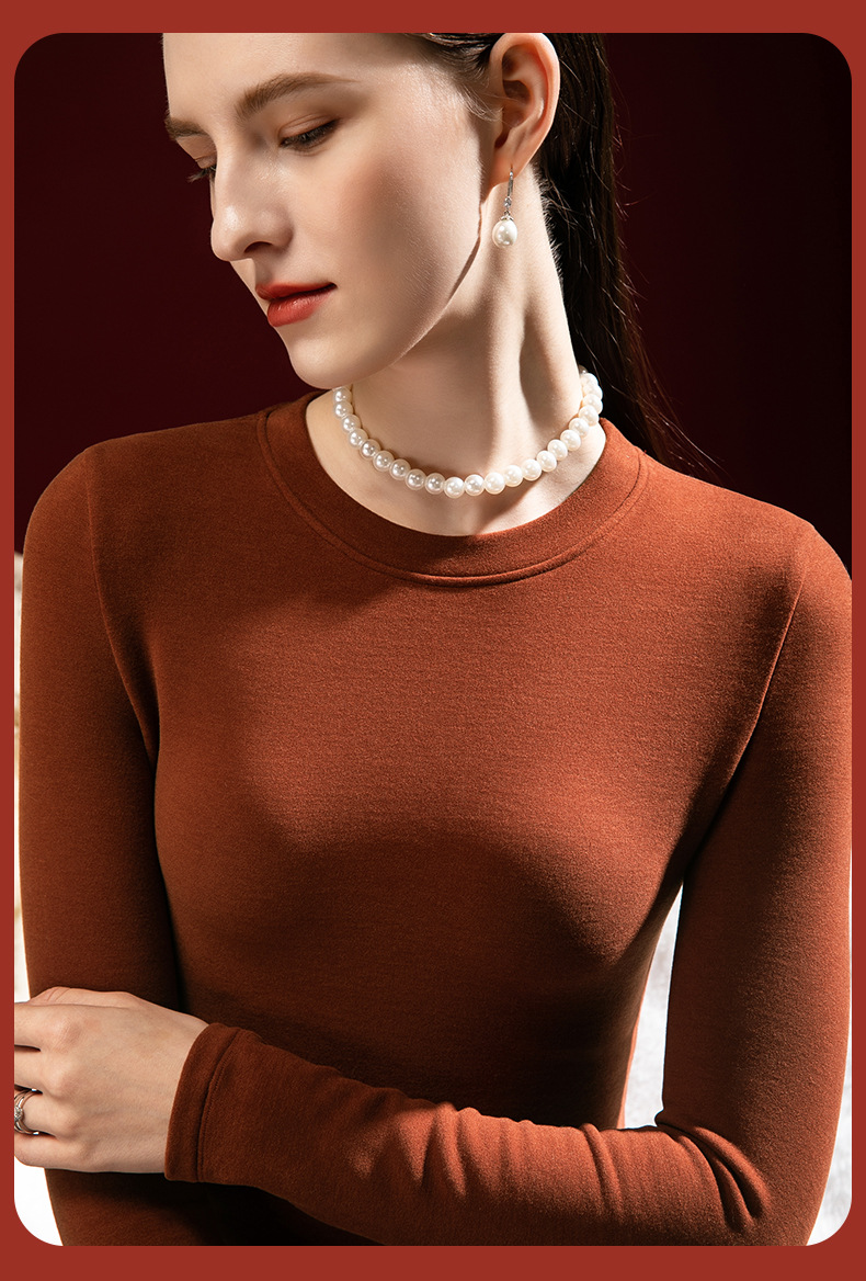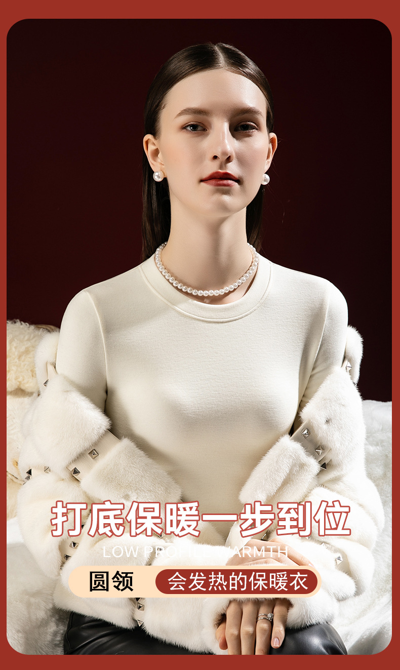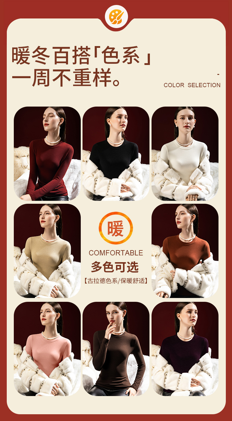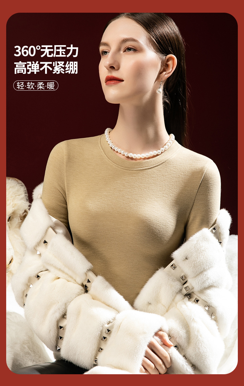 「自」全新升级【铂金会员146/天猫189/差价43】(63206)洛诗琳羊毛蚕丝加厚绒圆领打底衫2025秋冬百搭加绒保暖上衣