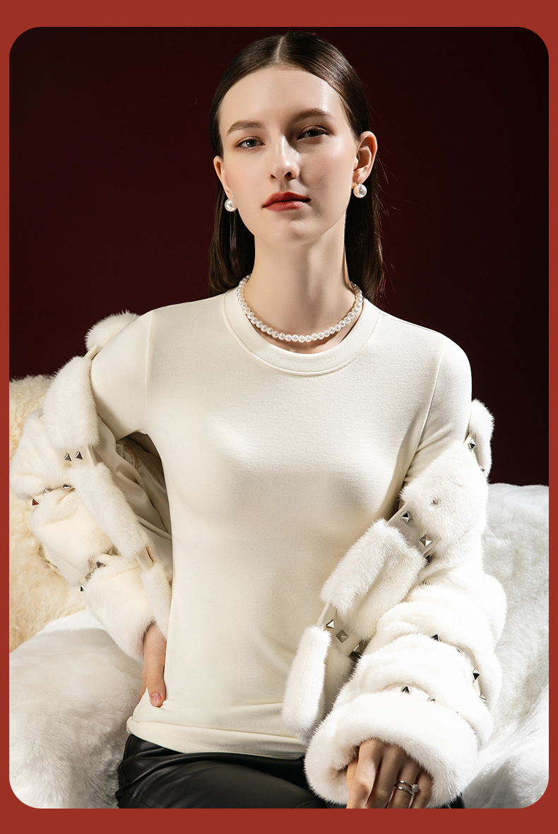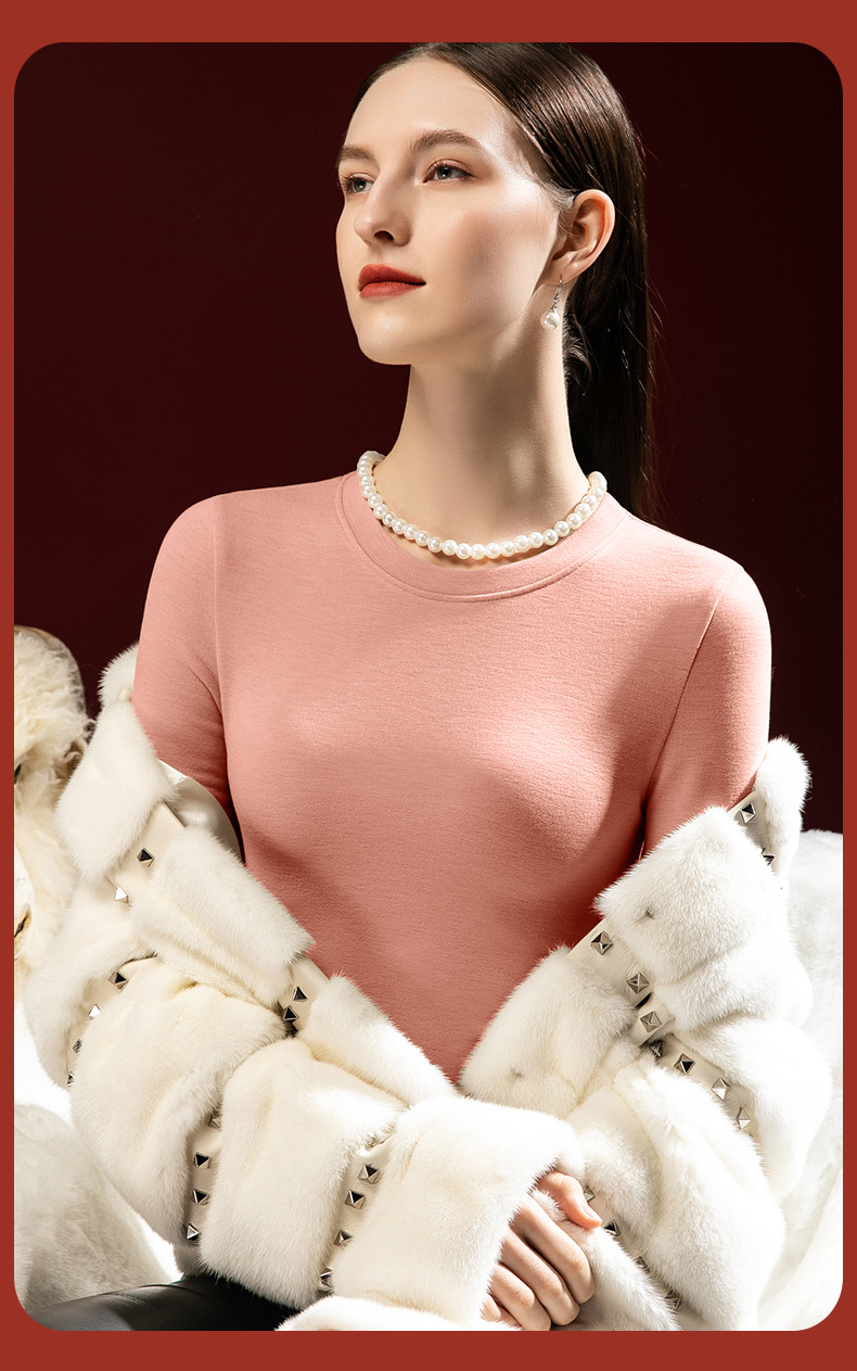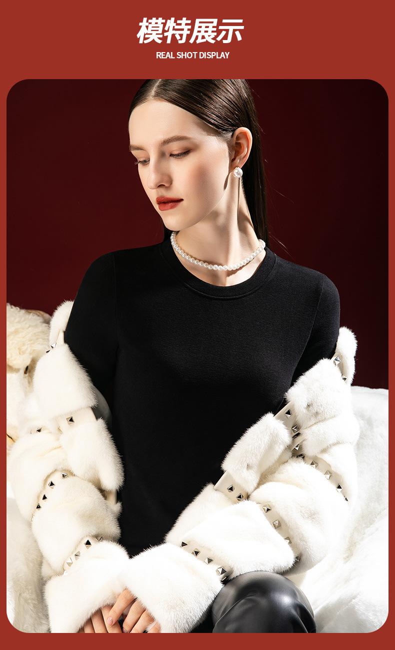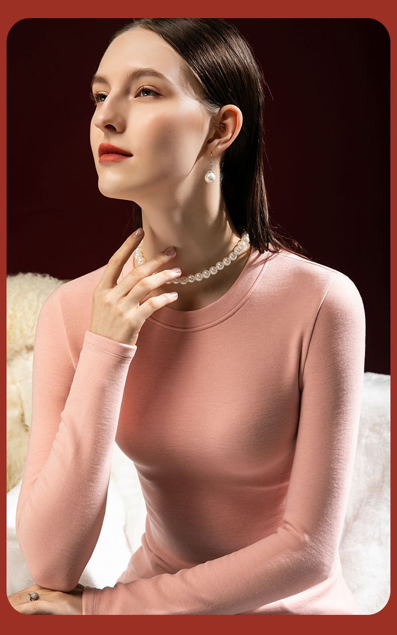 「自」全新升级【铂金会员146/天猫189/差价43】(63206)洛诗琳羊毛蚕丝加厚绒圆领打底衫2025秋冬百搭加绒保暖上衣