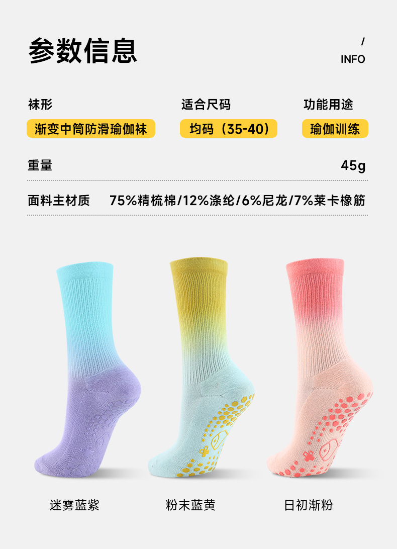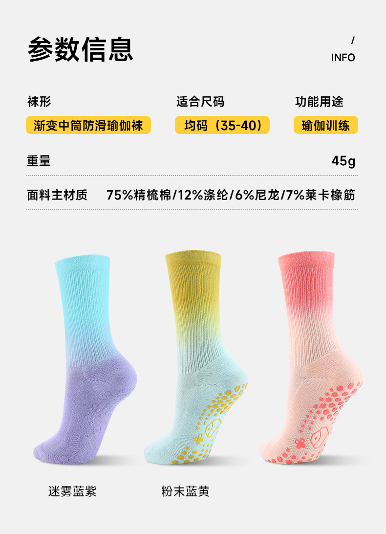 【59元任选2件】【小鱼加加】高品质中筒瑜伽袜专业防滑扎染渐变运动袜20230101