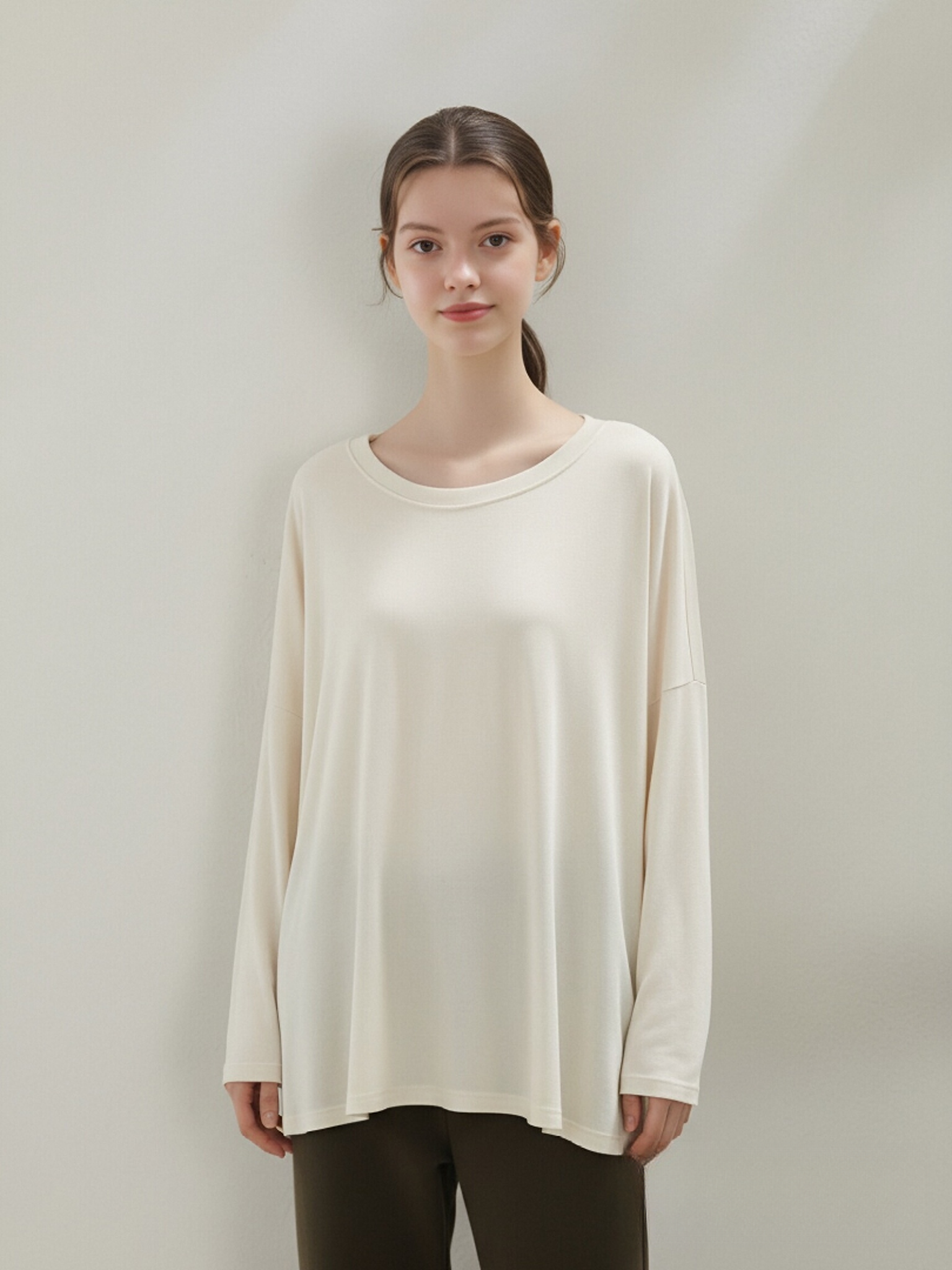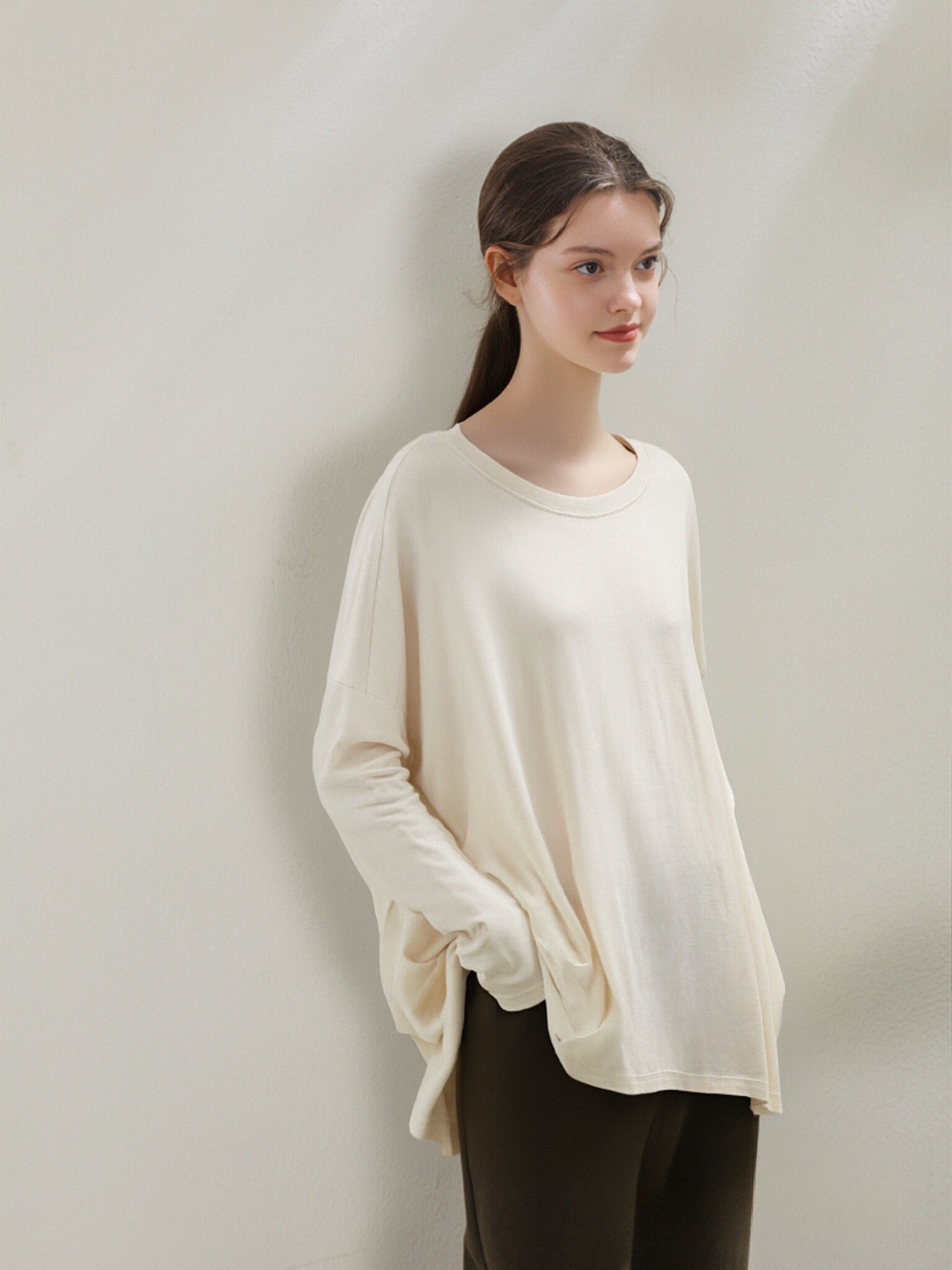 【超值特卖】8235慵懒风不规则蝙蝠袖长袖T恤打底衫-喜出