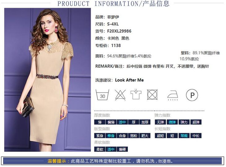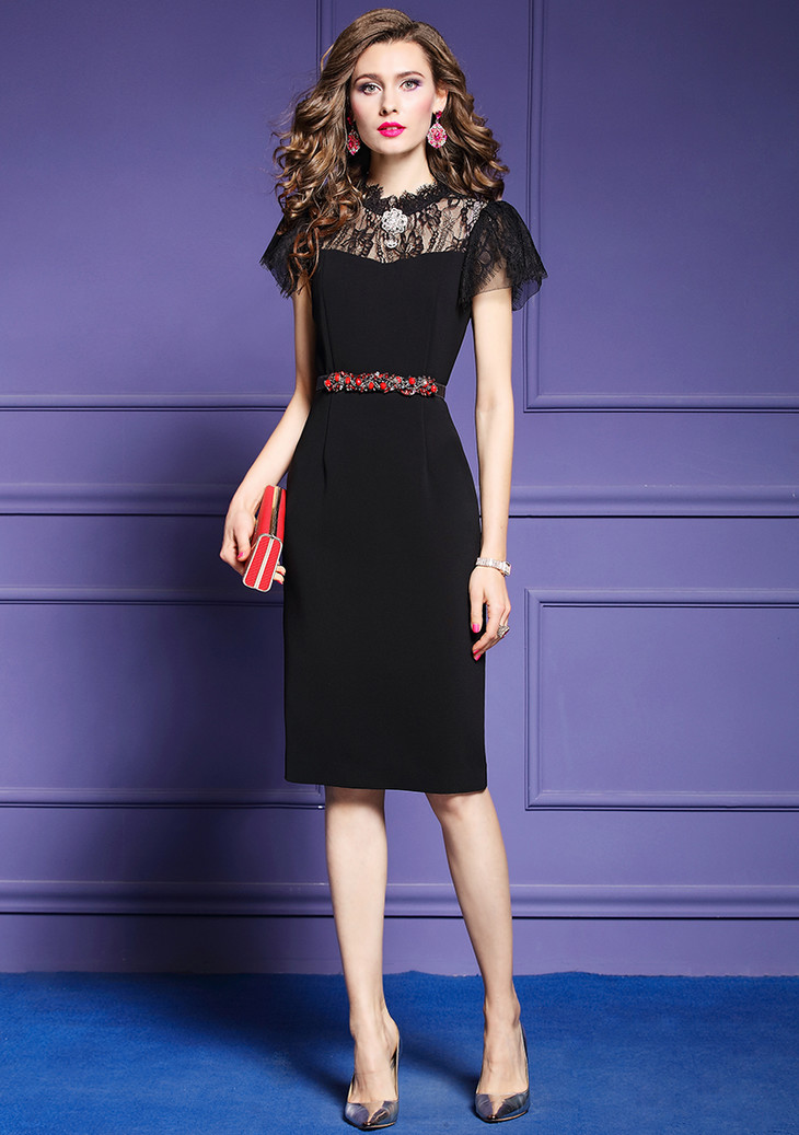 FMY-F20XL29986夏装名媛典雅修身蕾丝拼接轻熟风气质连衣裙