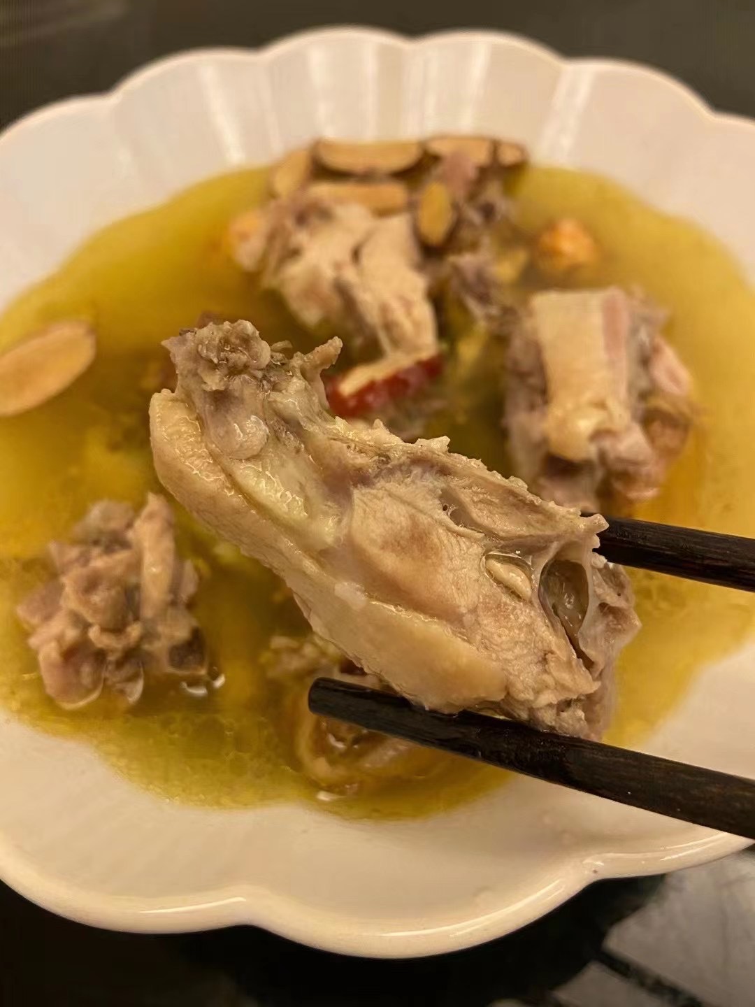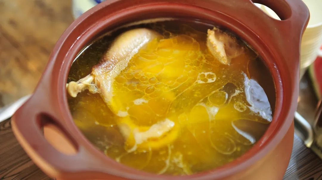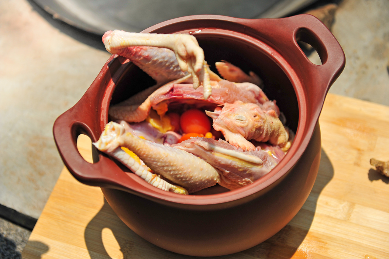 1、鸡煲汤:(不放味精,香料)满室漂香,饲料鸡则无法达到这个境界,土鸡煲汤后鸡骨较硬,肉紧有弹性,味甜、鲜嫩,煲的汤透明澄清。