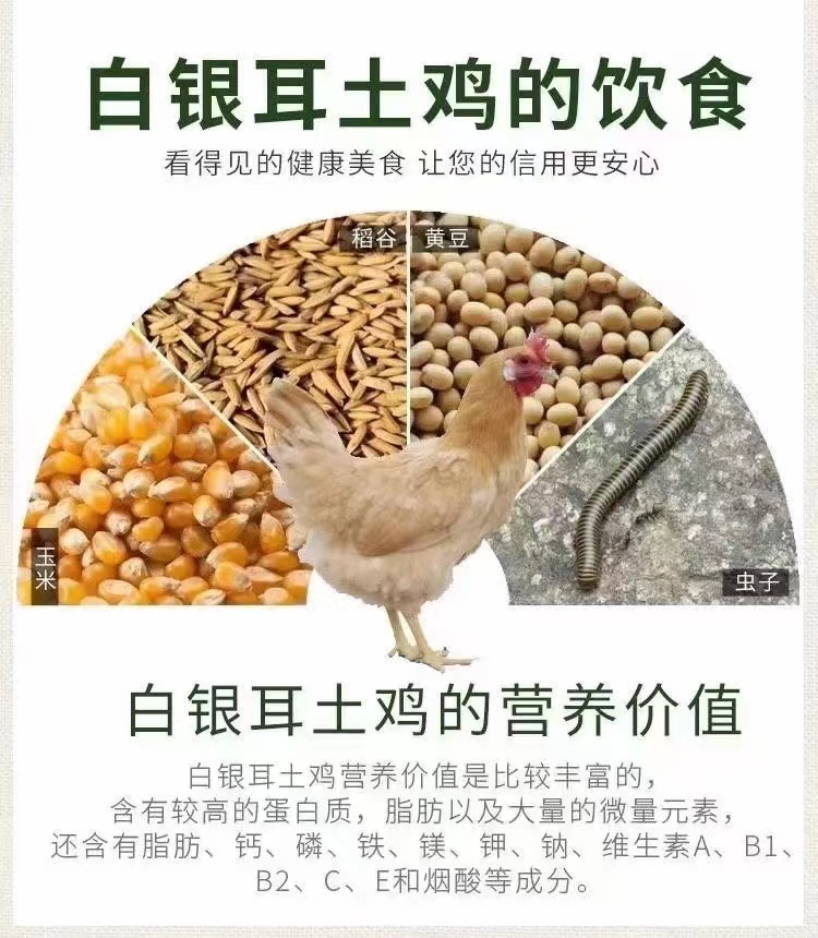 银耳鸡,肉质鲜嫩,营养价值高。据中国农科院畜牧所于1970年化验分析表明,银耳鸡肉中所含的各种氨基酸均超过国内其它著名鸡种。