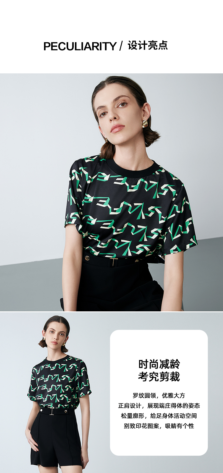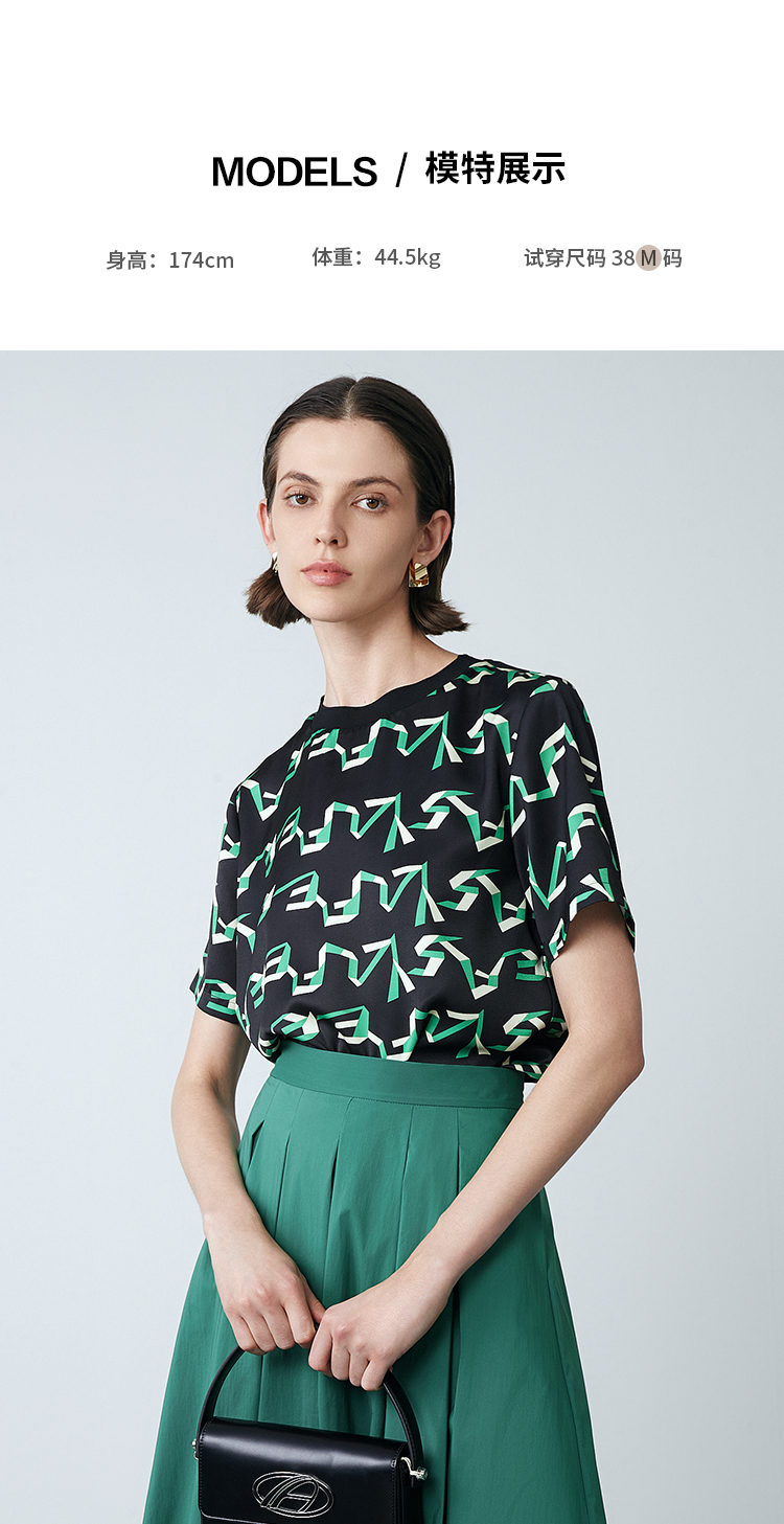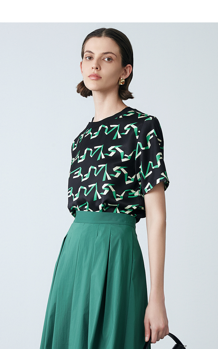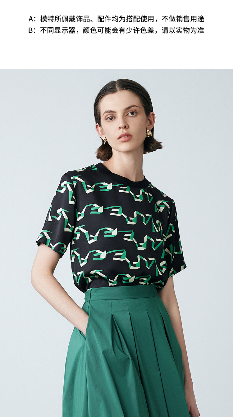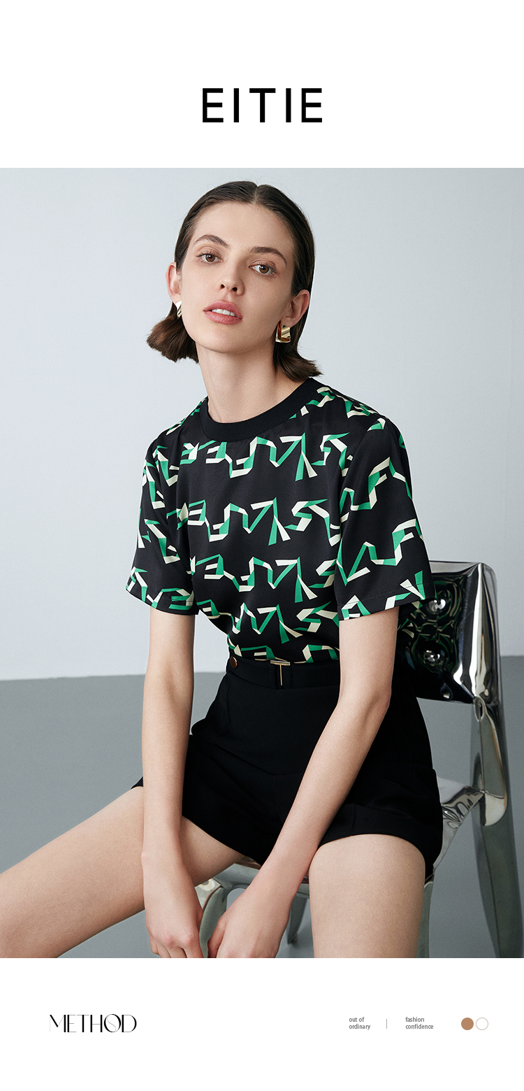 EITIE爱特爱夏季新款气质收腰显瘦通勤时尚印花T恤上衣7813514