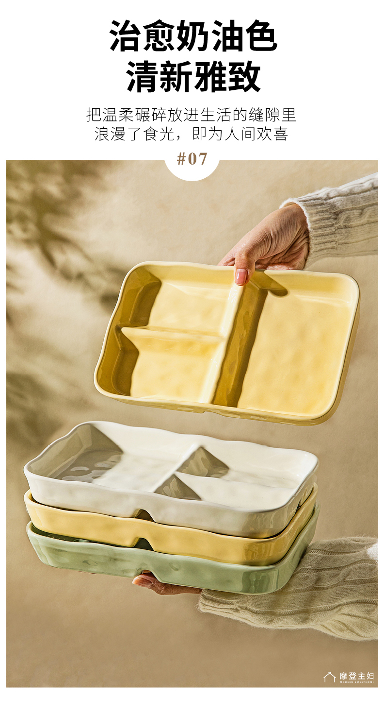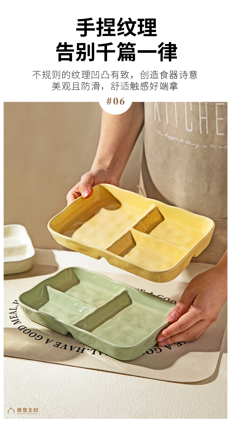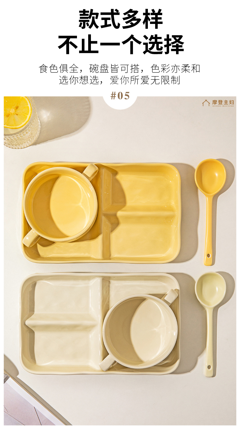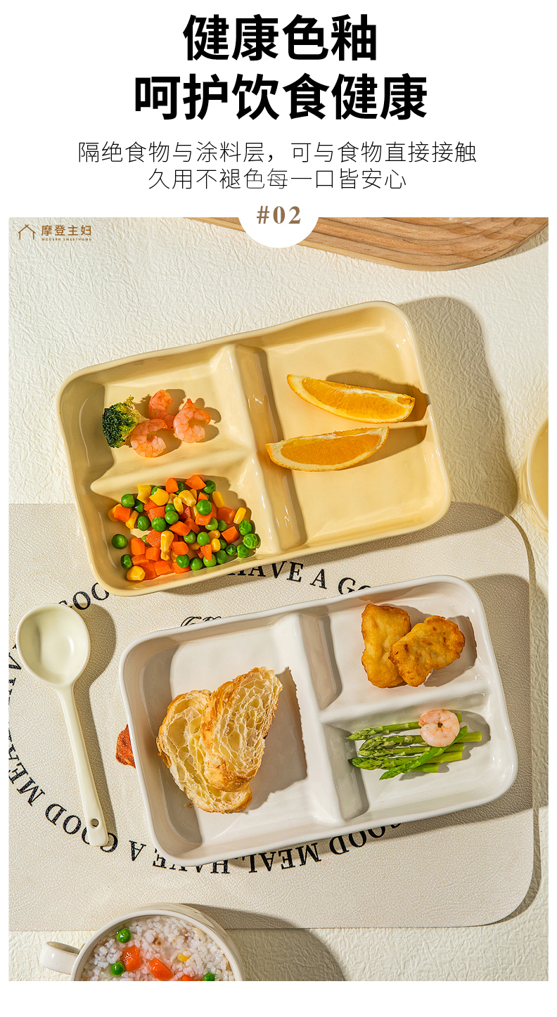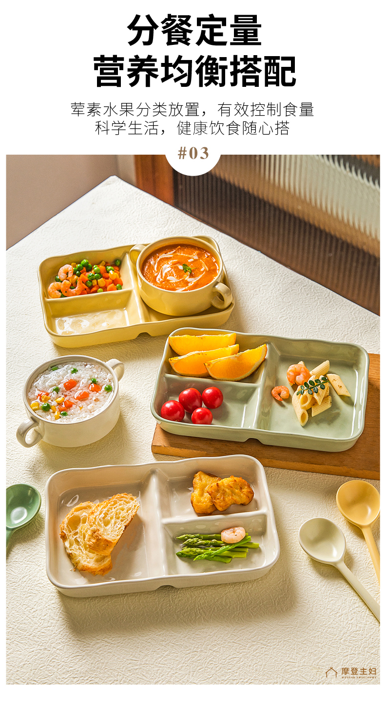 摩登主妇分餐盘陶瓷家用月子一人食餐具套装减脂早餐盘分格大人