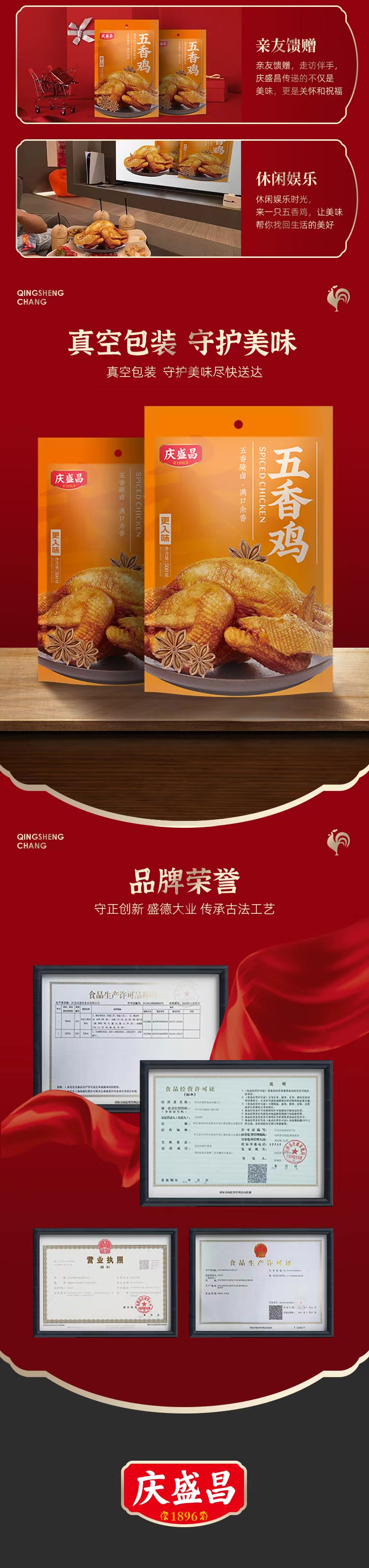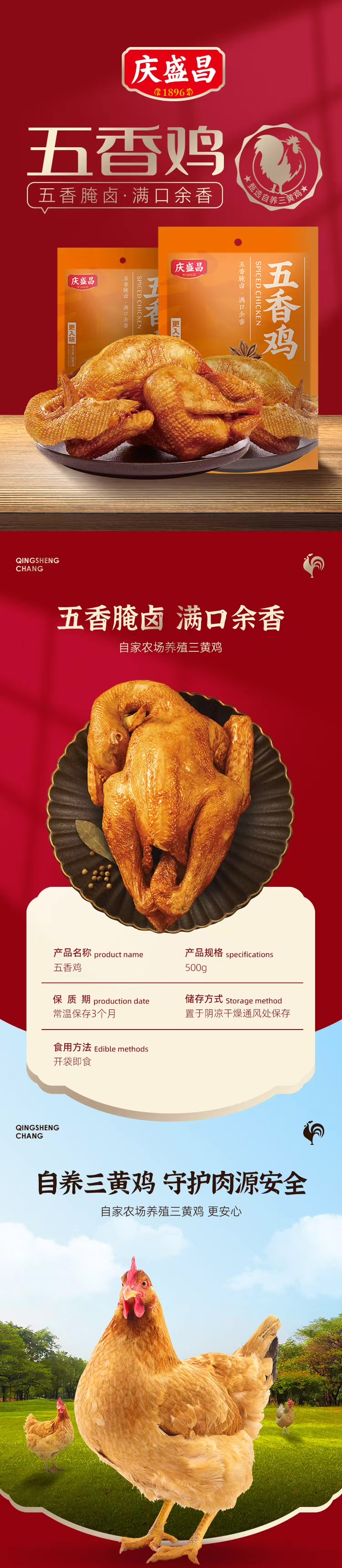 五香鸡 自家农畅养殖三黄鸡卤制 真空包装 甄选辅材 五香腌卤