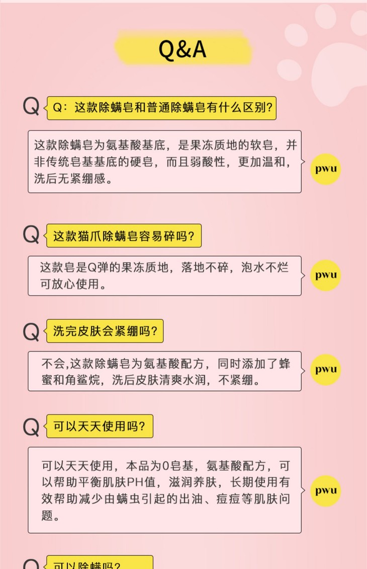 PWU果冻猫爪除螨皂沐浴露净螨持久洗脸皂美背香皂