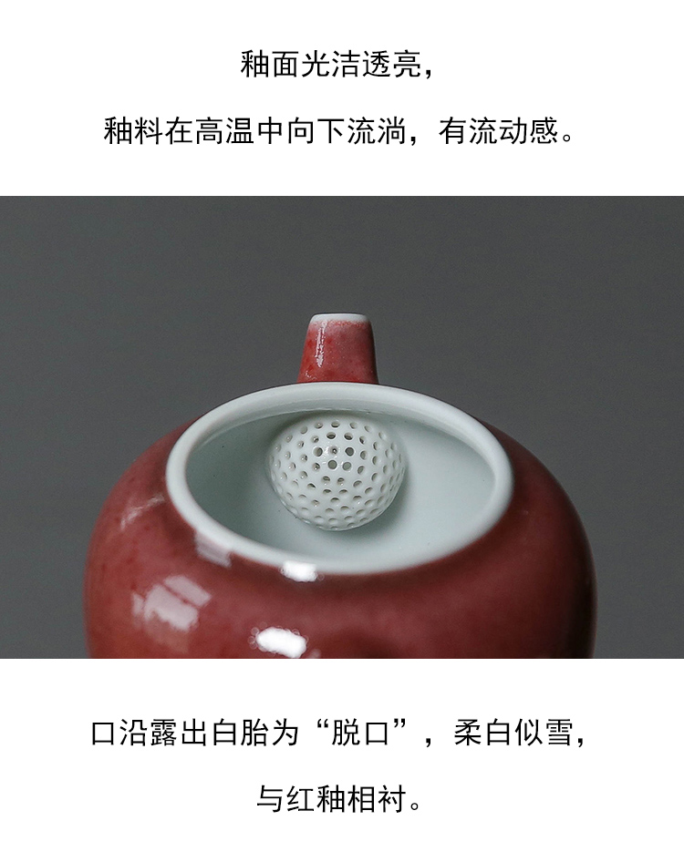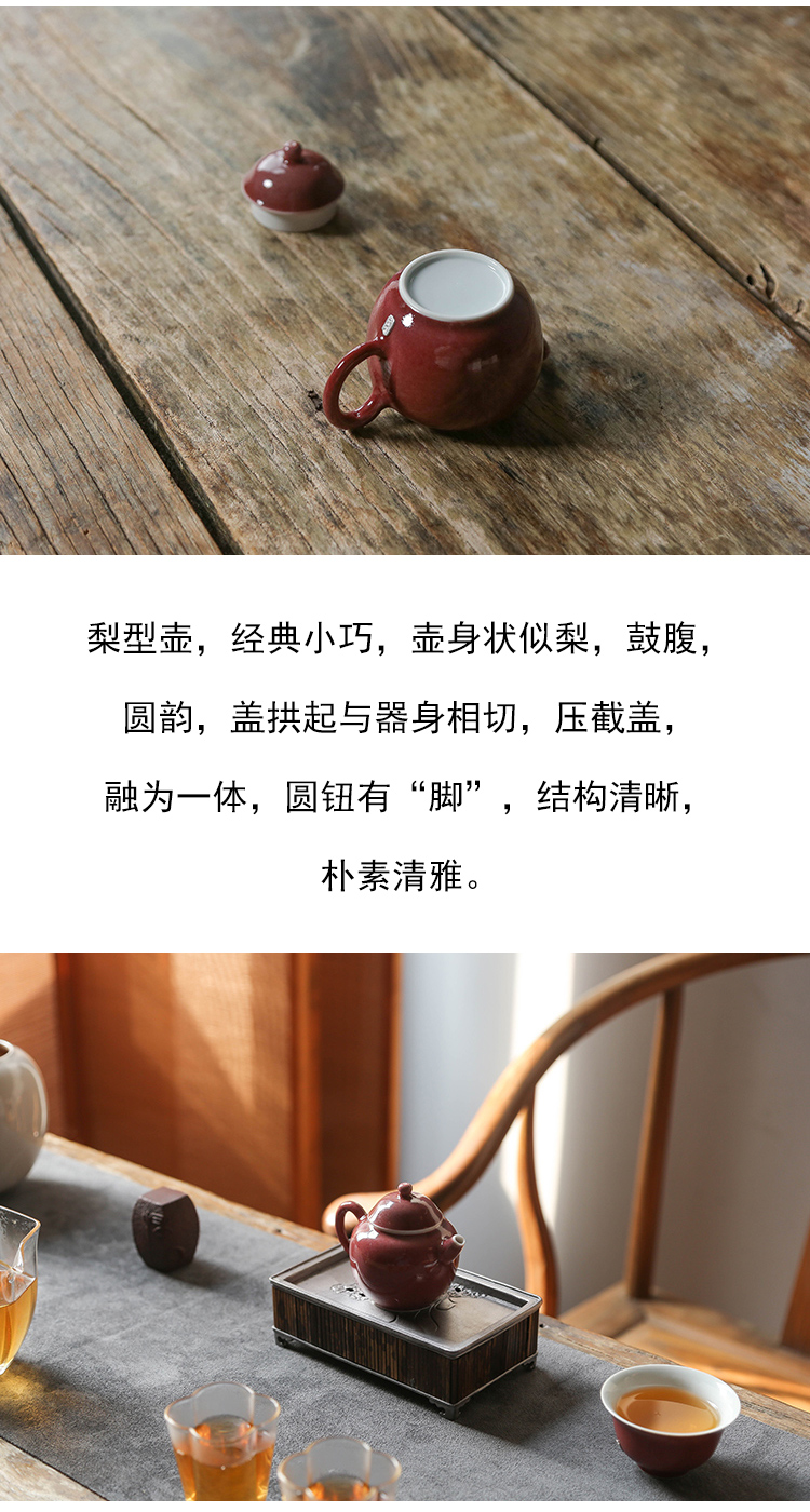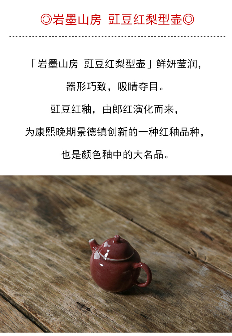 茶香记 岩墨山房豇豆红梨型壶80ml景德镇陶瓷素雅泡茶壶功夫茶具