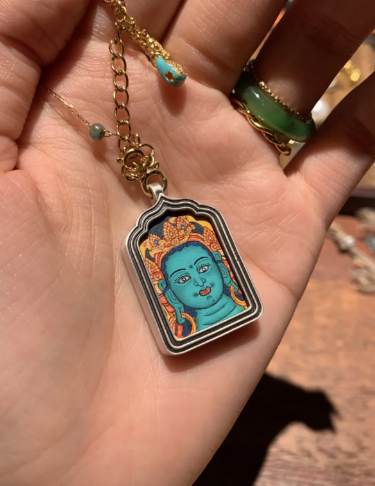 4.不佩戴时将唐卡放在家中干净的地方如客厅、书房等,不要放在厨房、卫生间,也可单独放置在布袋首饰盒里保存。