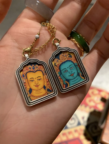 • 925纯银唐卡盒:重约12克,背面刻有八宝吉祥图案,唐卡尺寸为2*3cm,小巧精致,适合佩戴或收藏。