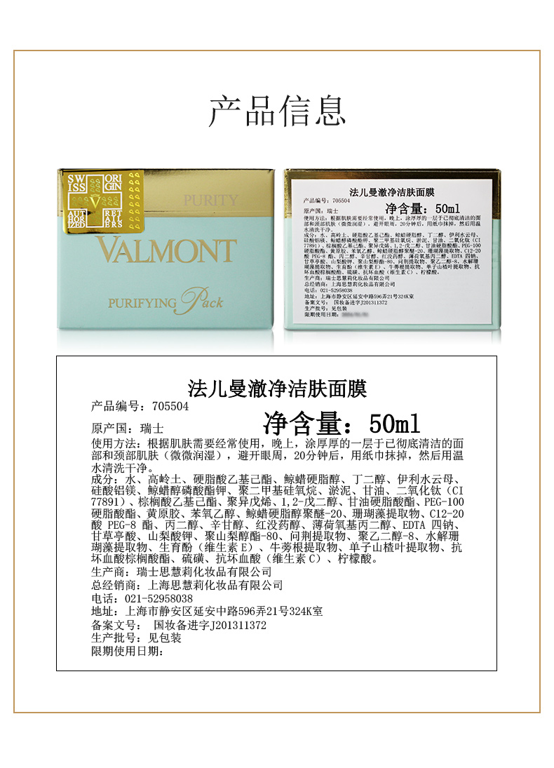 Valmont/法儿曼澈净洁肤面膜清洁毛孔舒缓控油保湿去黑头 心选到家