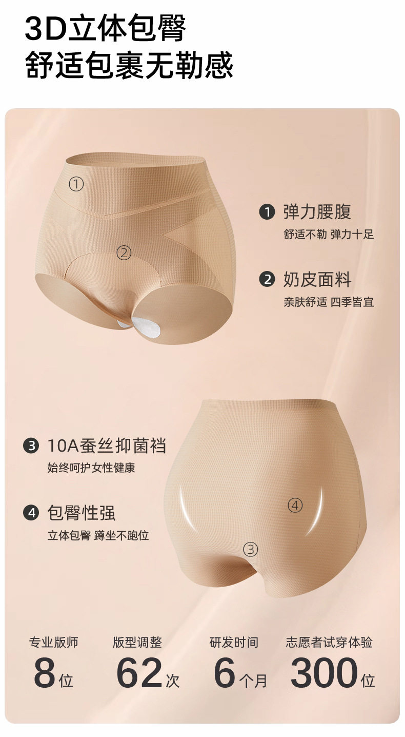 XY-1570   【1条】新品无痕冰丝内裤女高腰收小肚子提臀塑形10A抗菌裆薄款 商品图3
