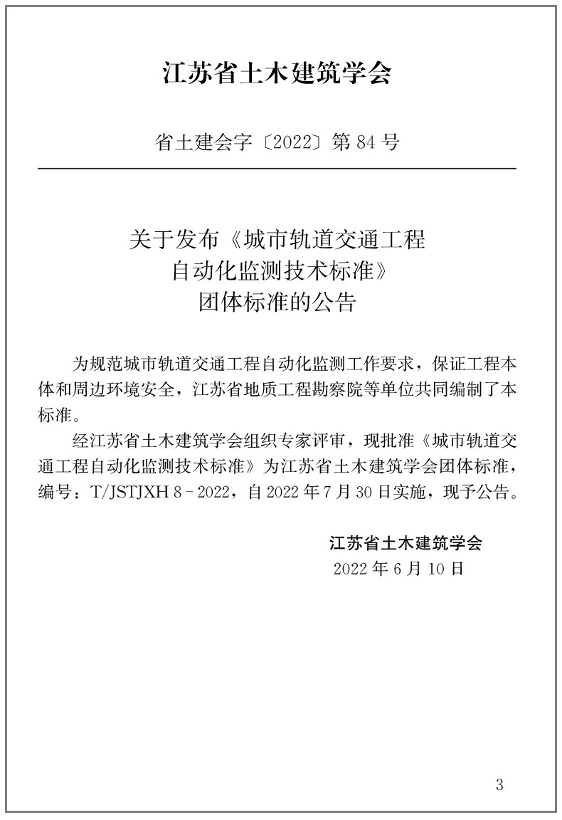 书名:城市轨道交通工程自动化监测技术标准T/JSTJXH8-2022