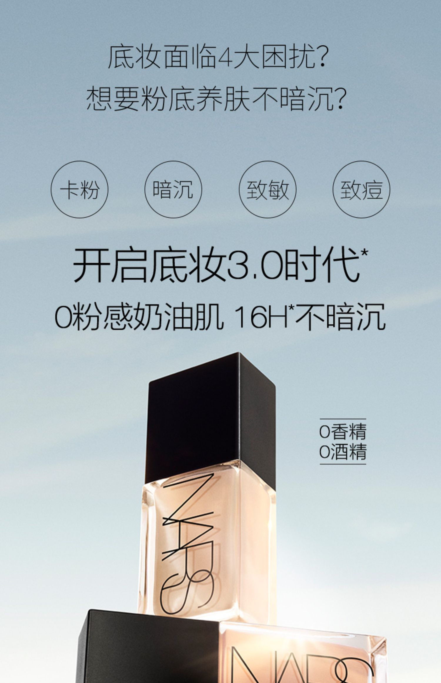 NARS 超方瓶流光美肌粉底液30ml养肤持妆不卡粉不暗沉