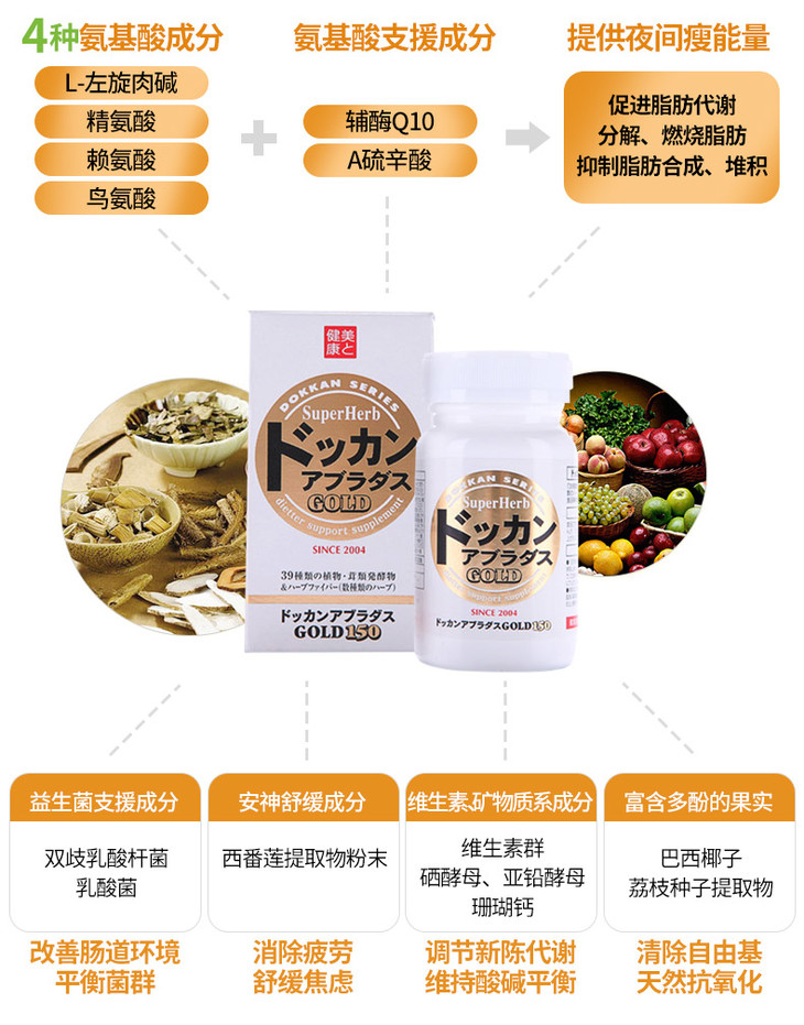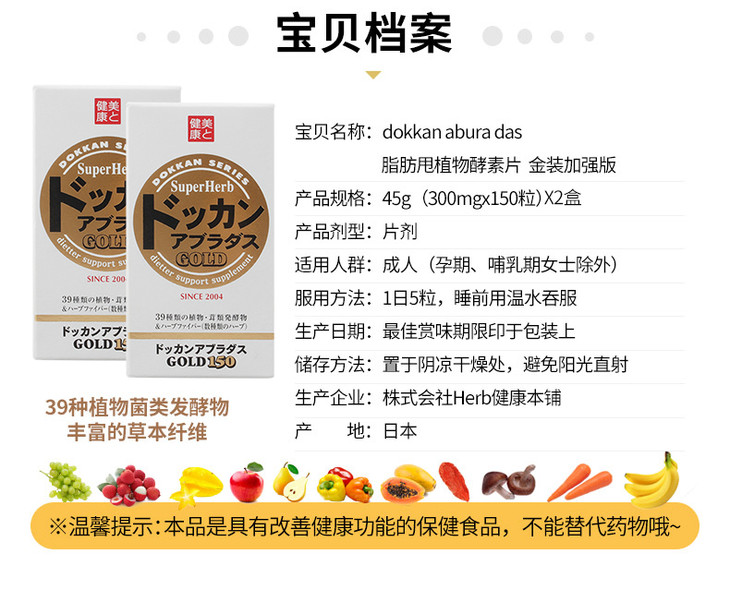 健康本铺dokkan植物酵素夜间酵素150粒金装加强版