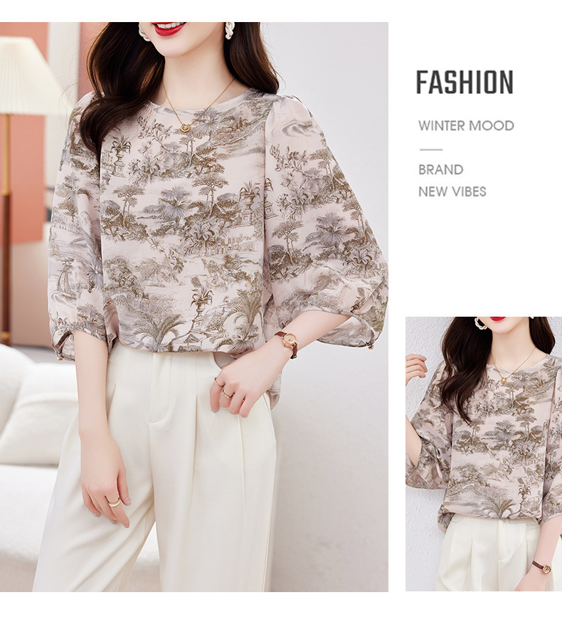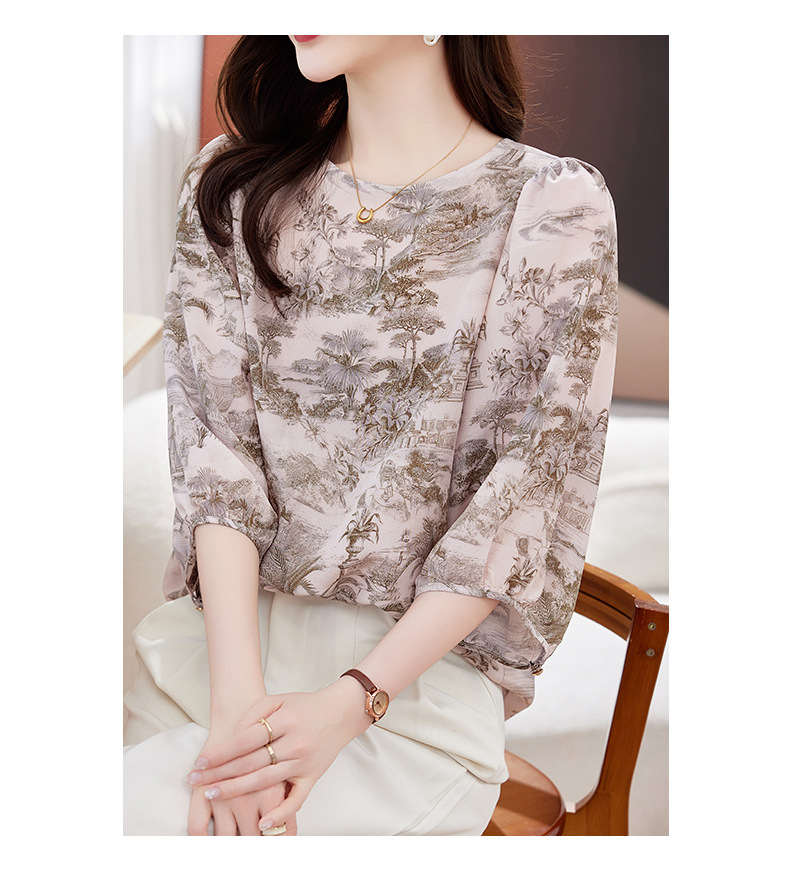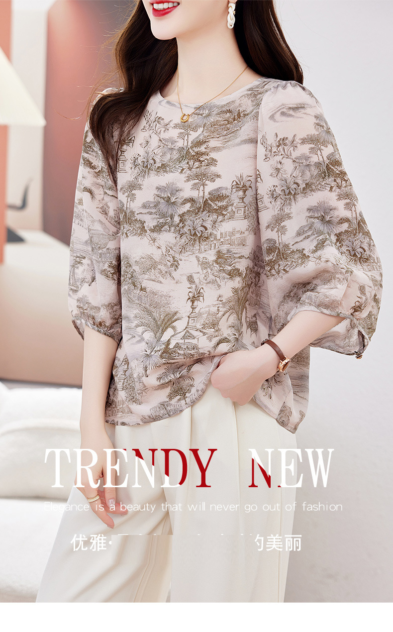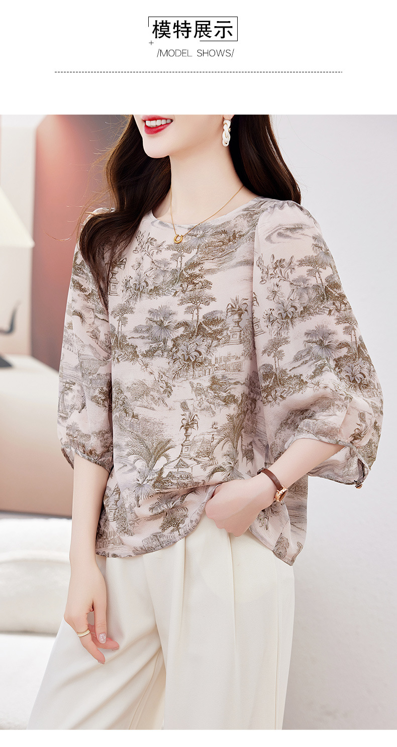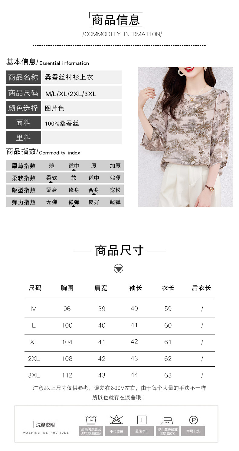 KQ-A21823透气双绉真丝上衣女七分袖夏桑蚕丝T恤衫气质圆领小衫