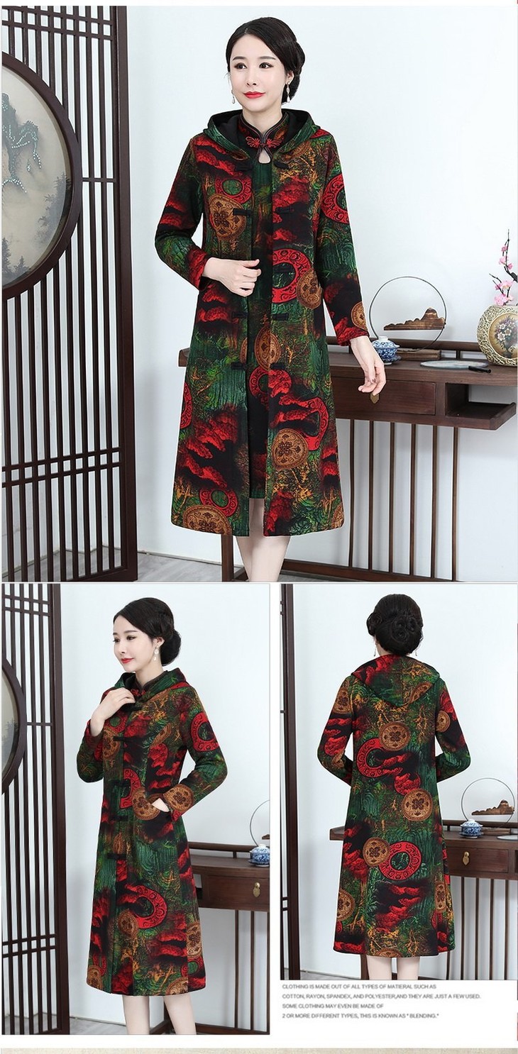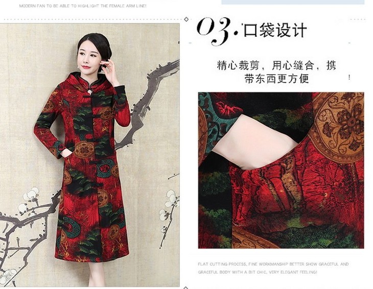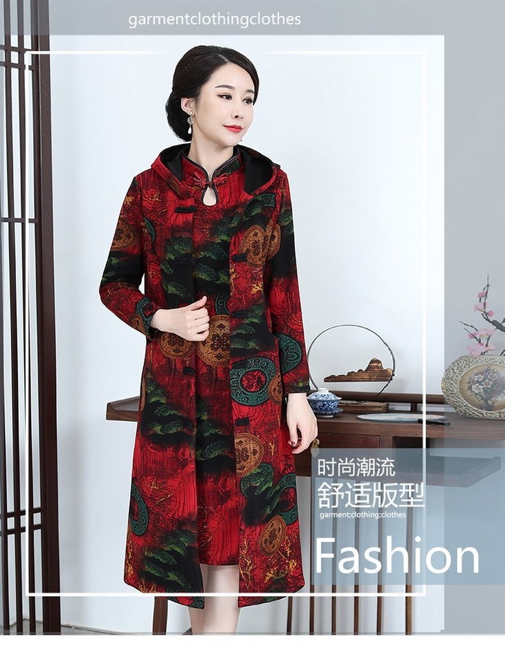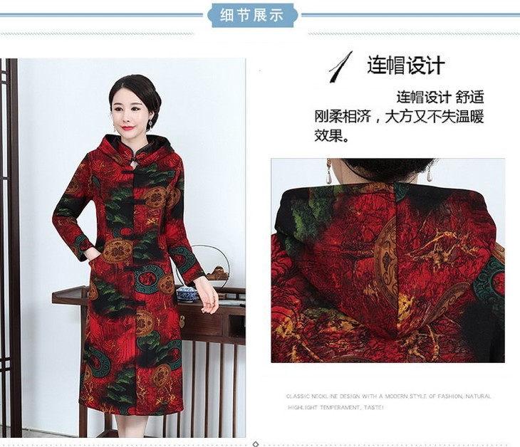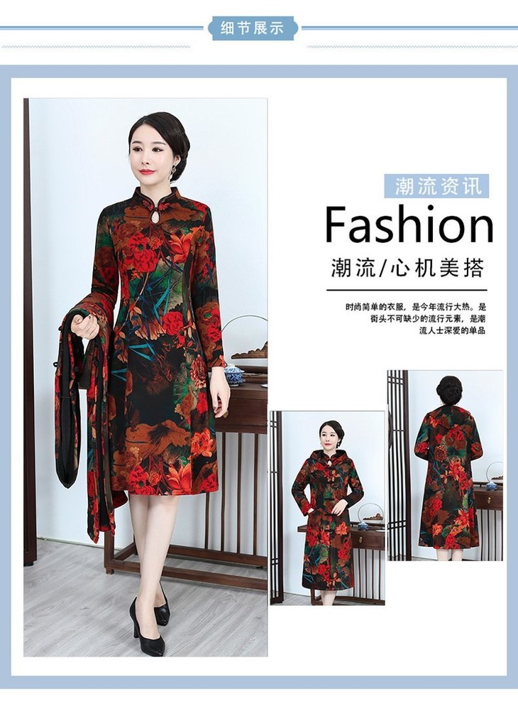MQ-MZL8135冬装新款加绒加厚连帽旗袍连衣裙两件套