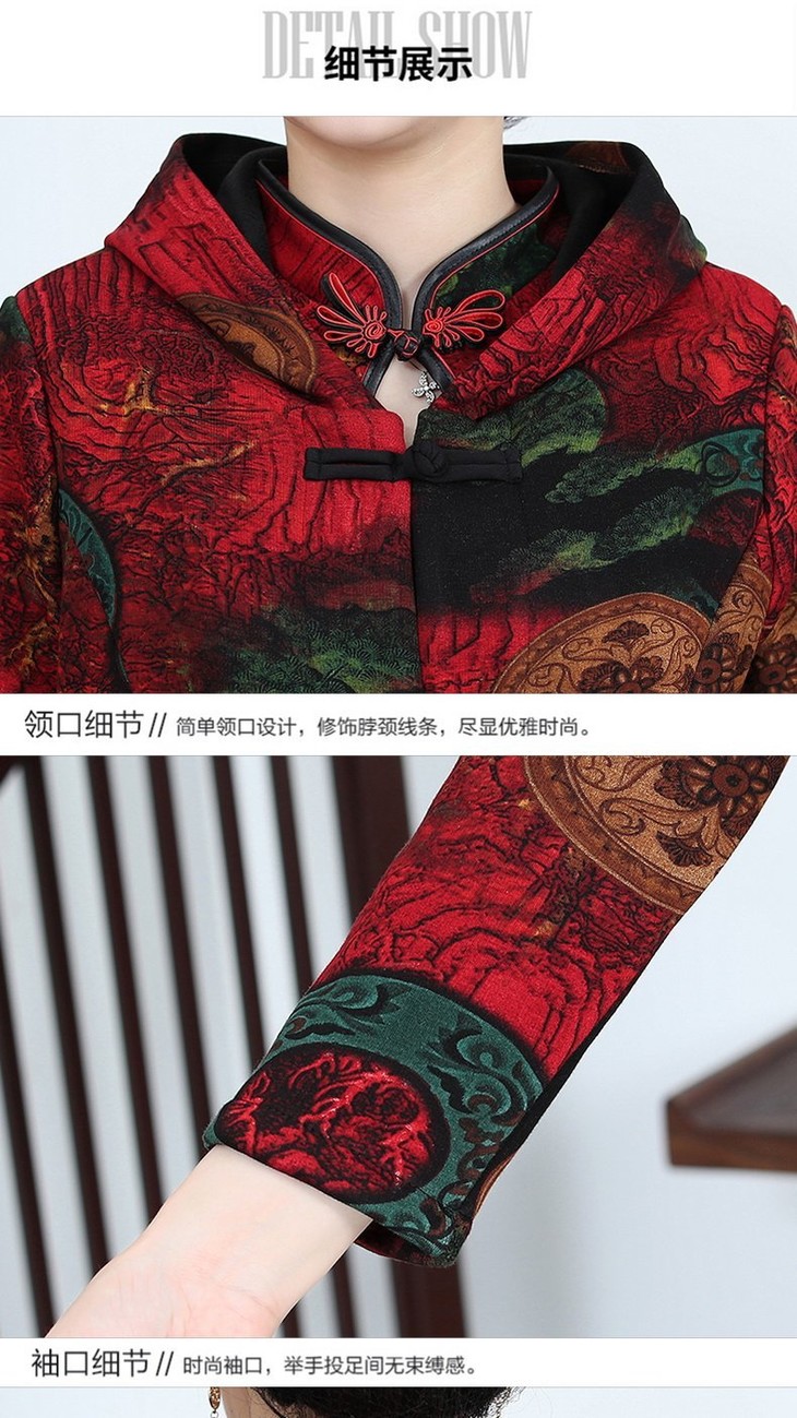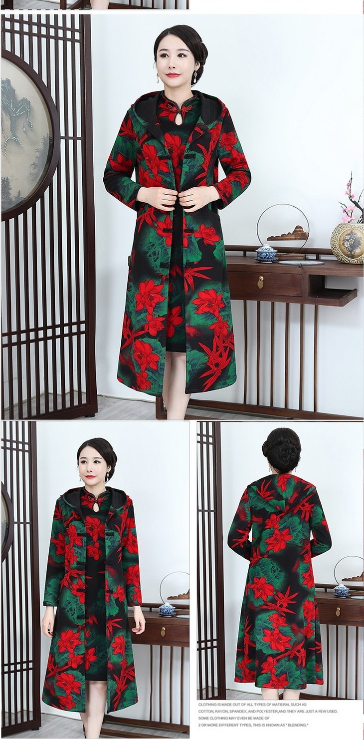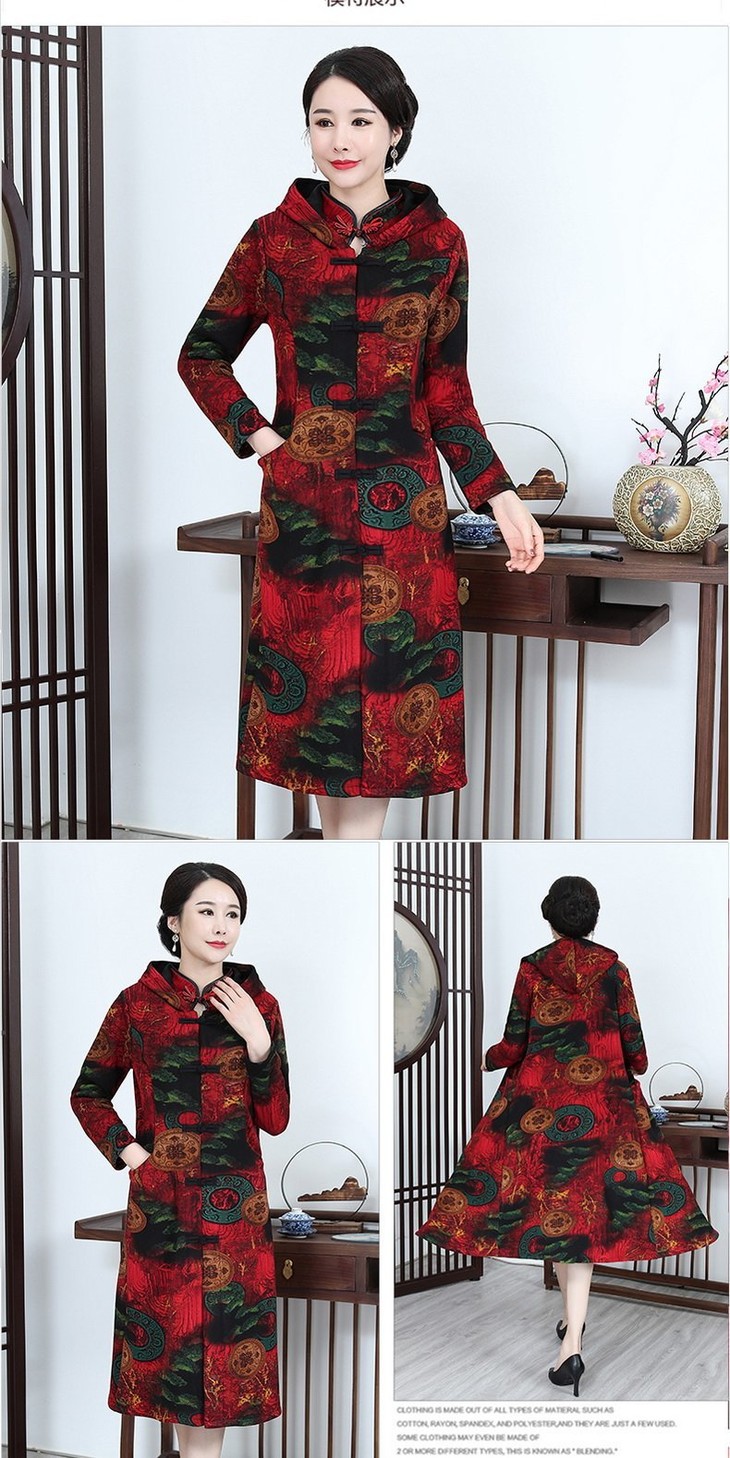 MQ-MZL8135冬装新款加绒加厚连帽旗袍连衣裙两件套