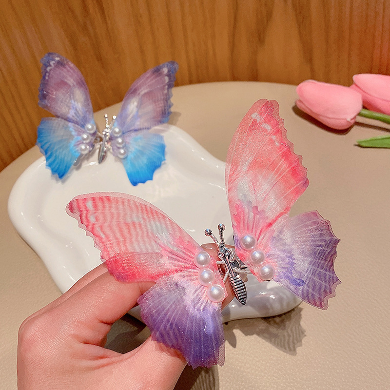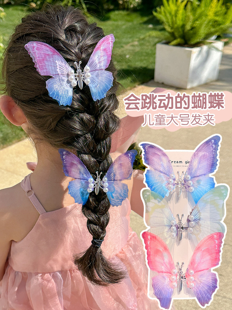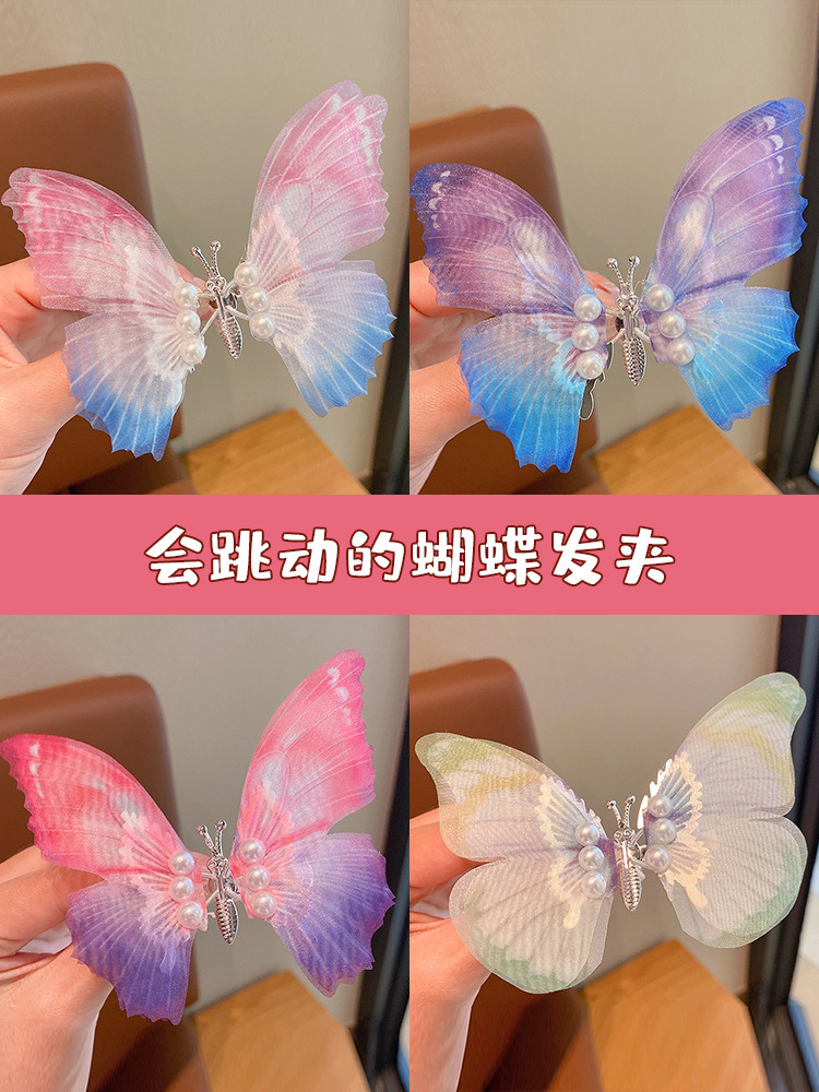 会动的蝴蝶翅膀发夹女儿童发卡女孩夹子女童汉服发饰古风仙气头饰