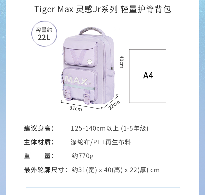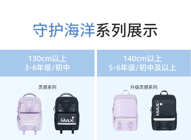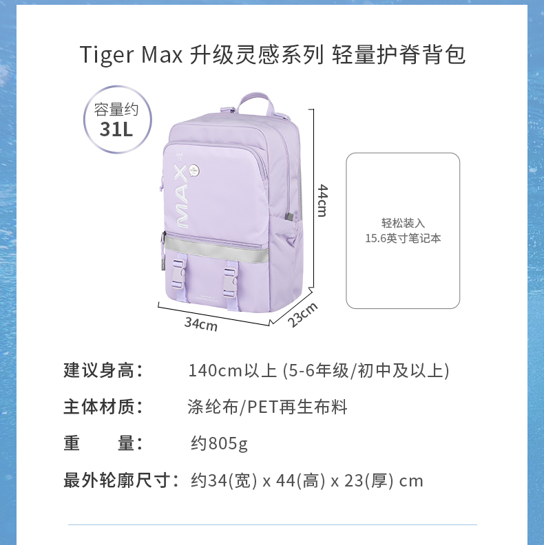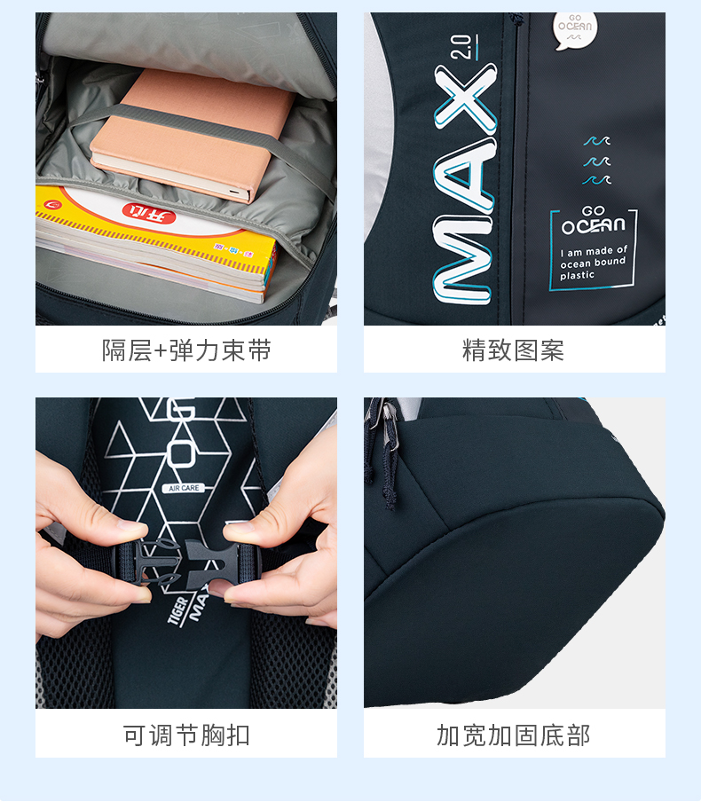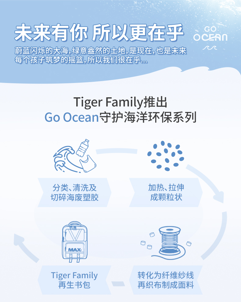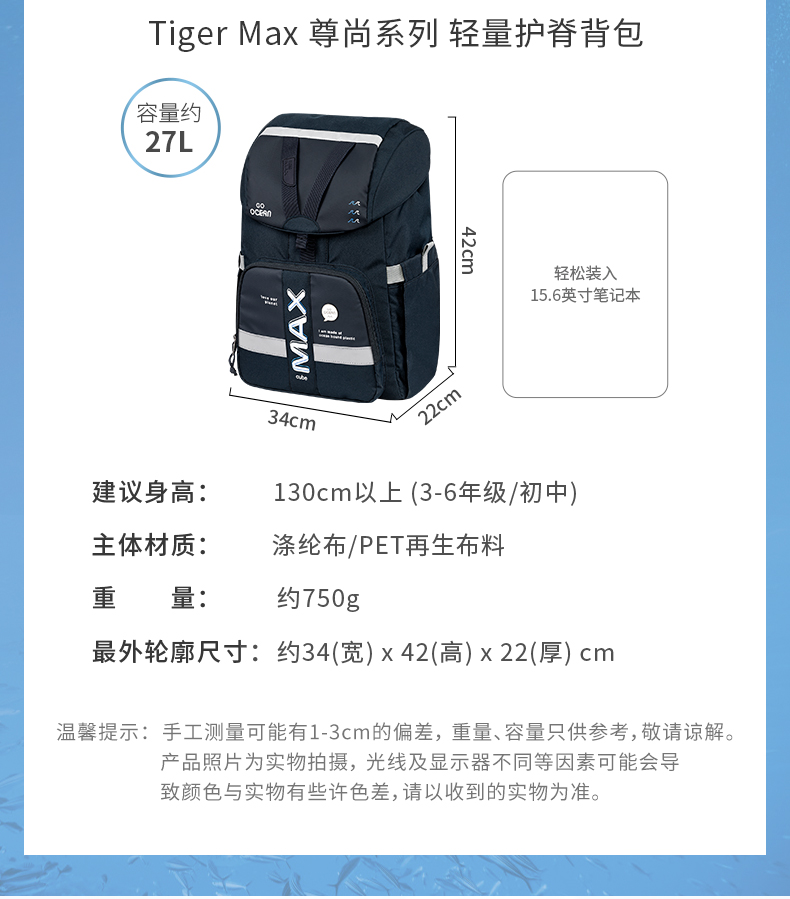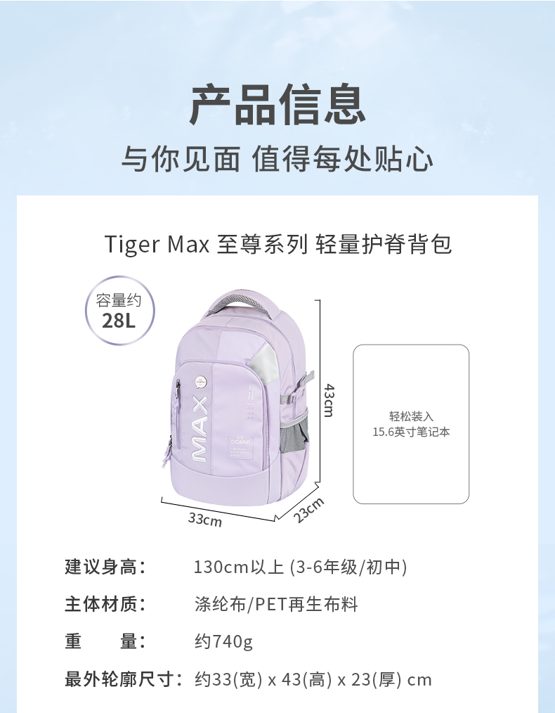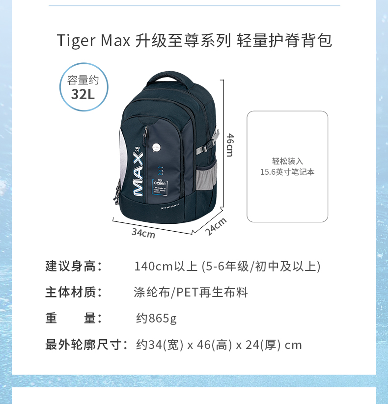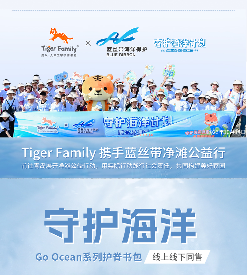 tigerfamily虎米 3-6年级初中及以上守护海洋男女书包小学生初中护脊超轻大容量双肩包