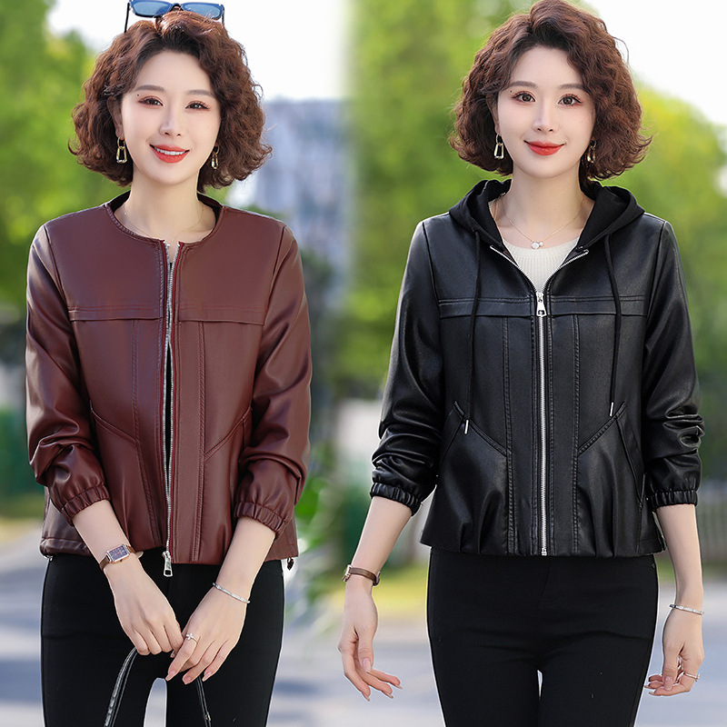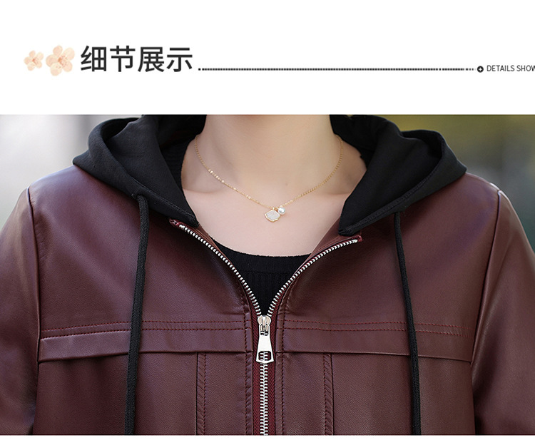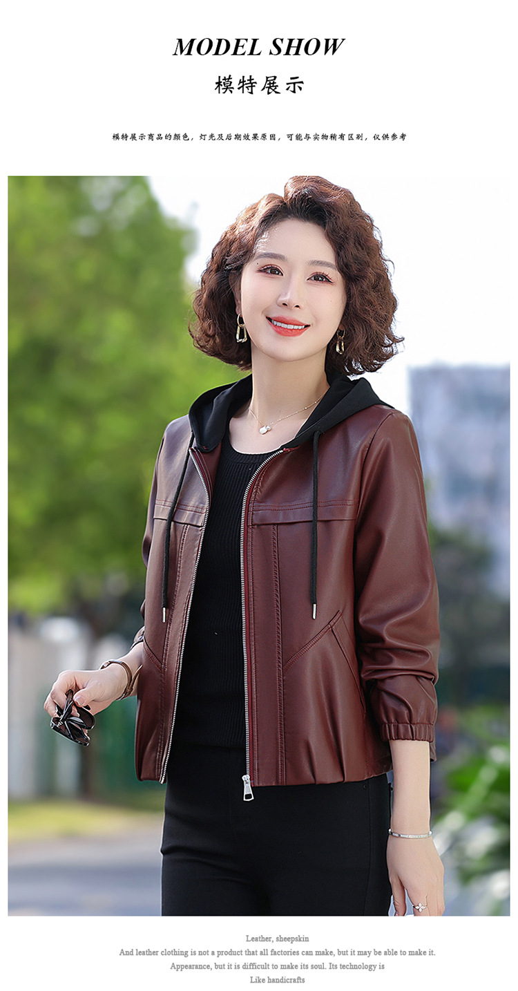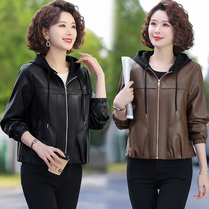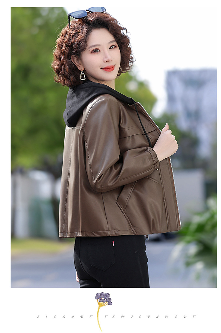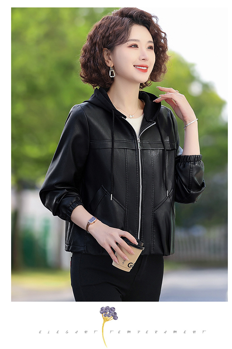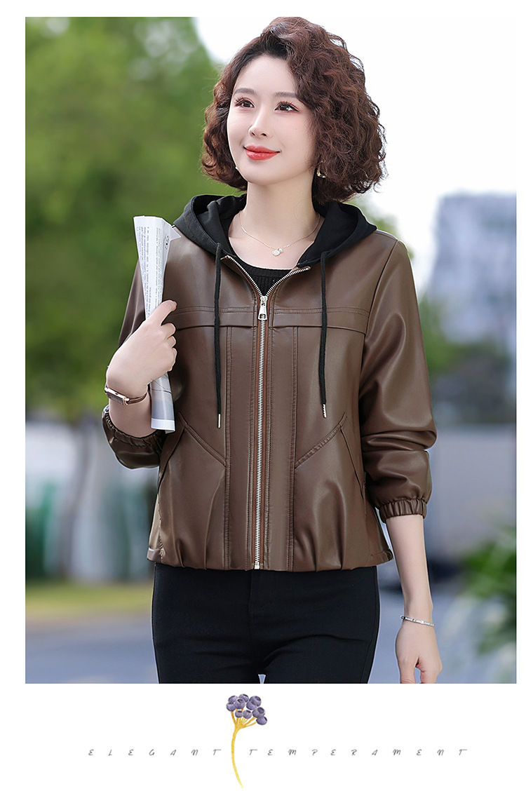 Aye9186短款海宁皮衣外套中老年女装小个子2025春秋款皮衣连帽妈妈皮夹克