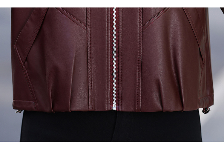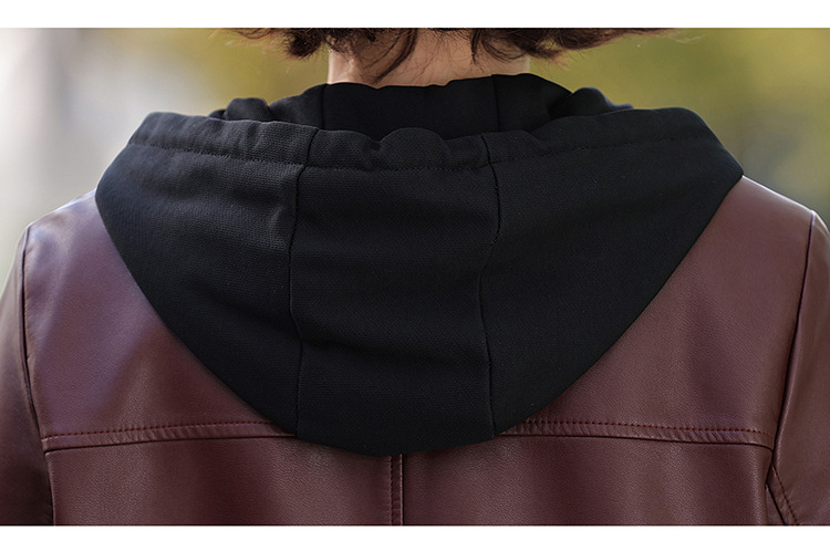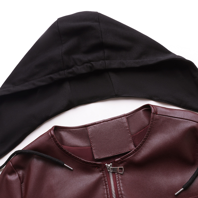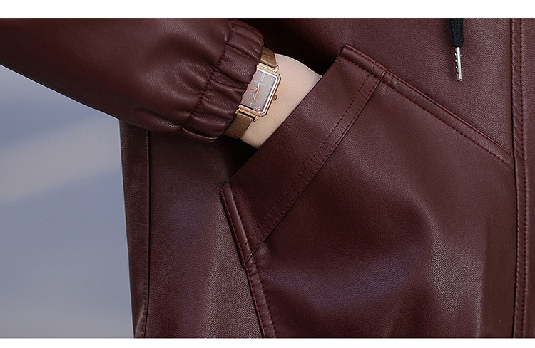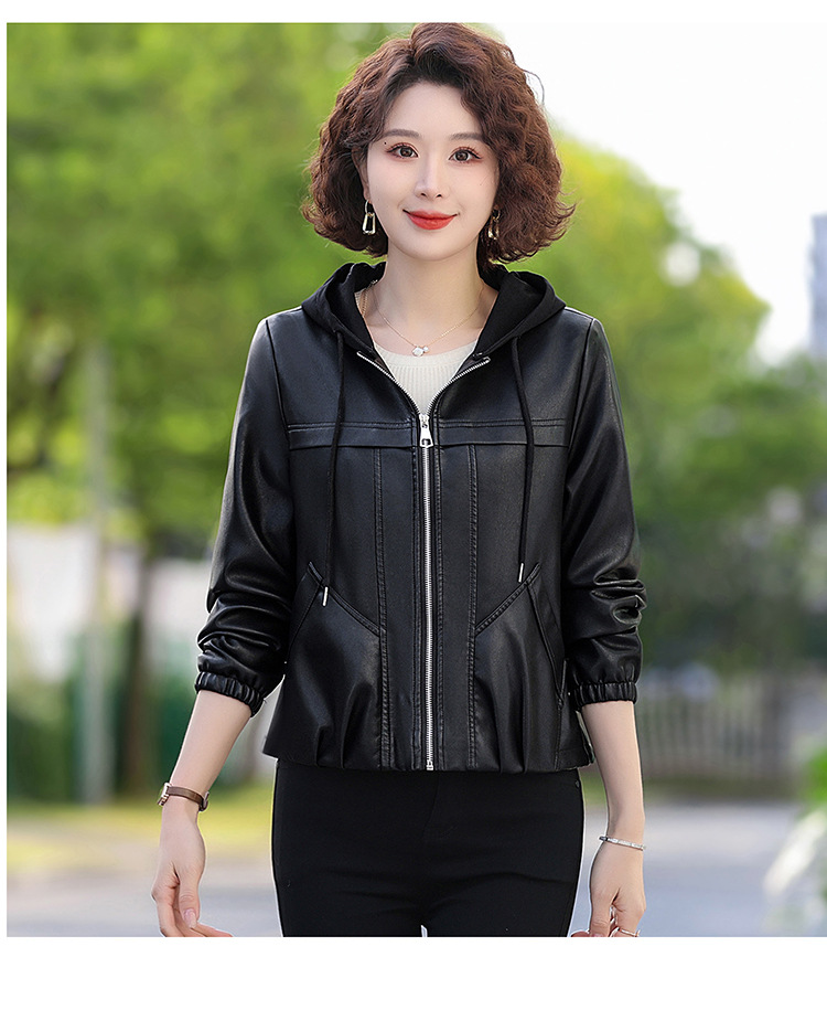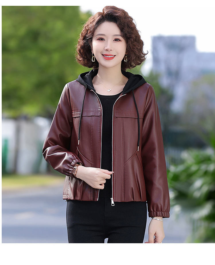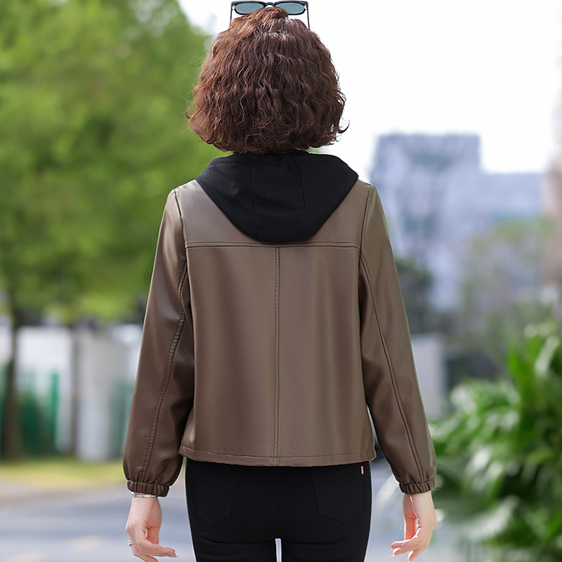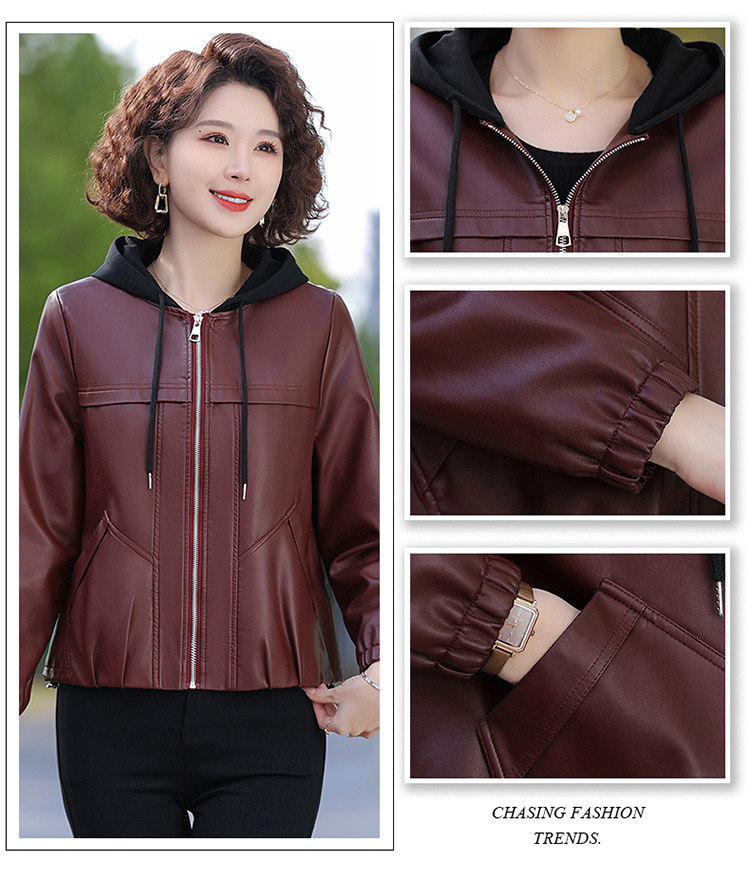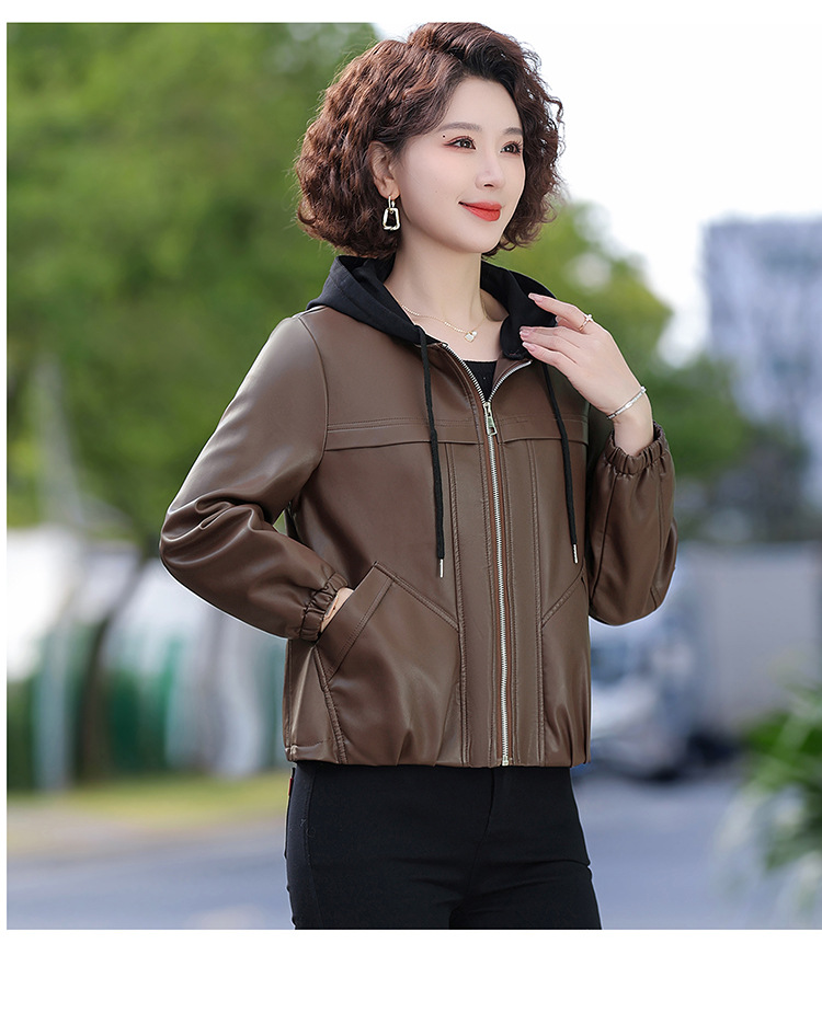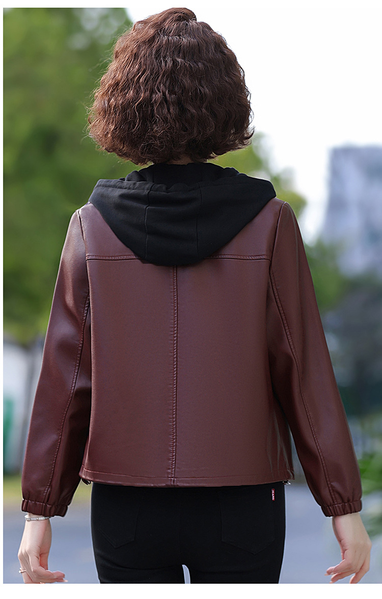 Aye9186短款海宁皮衣外套中老年女装小个子2025春秋款皮衣连帽妈妈皮夹克