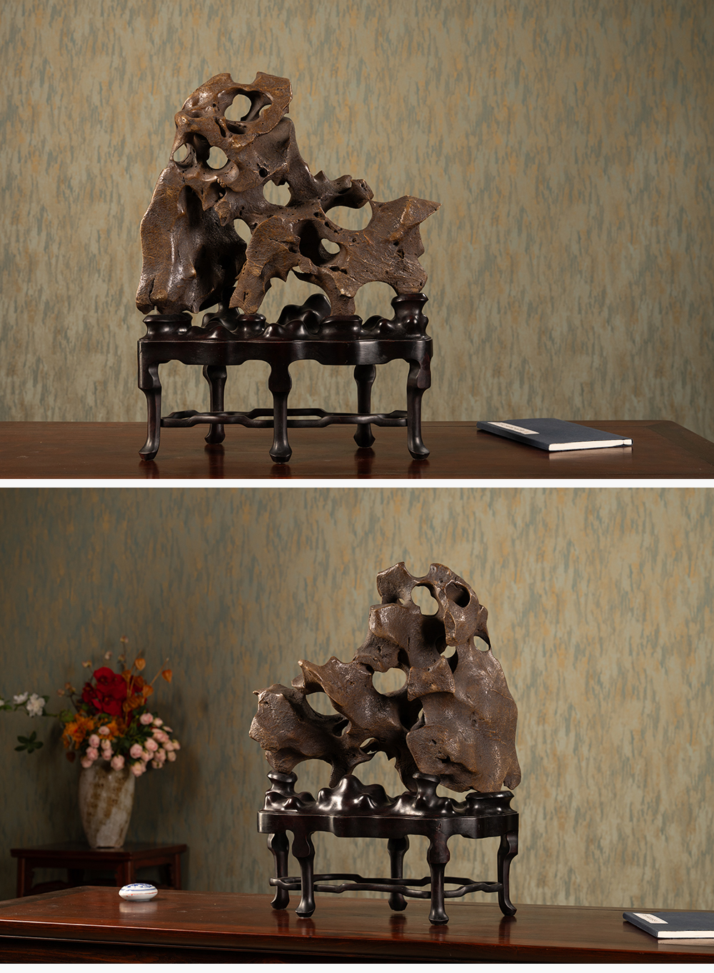 清 黄花梨镶竹丝编四抹门亮格柜摆件