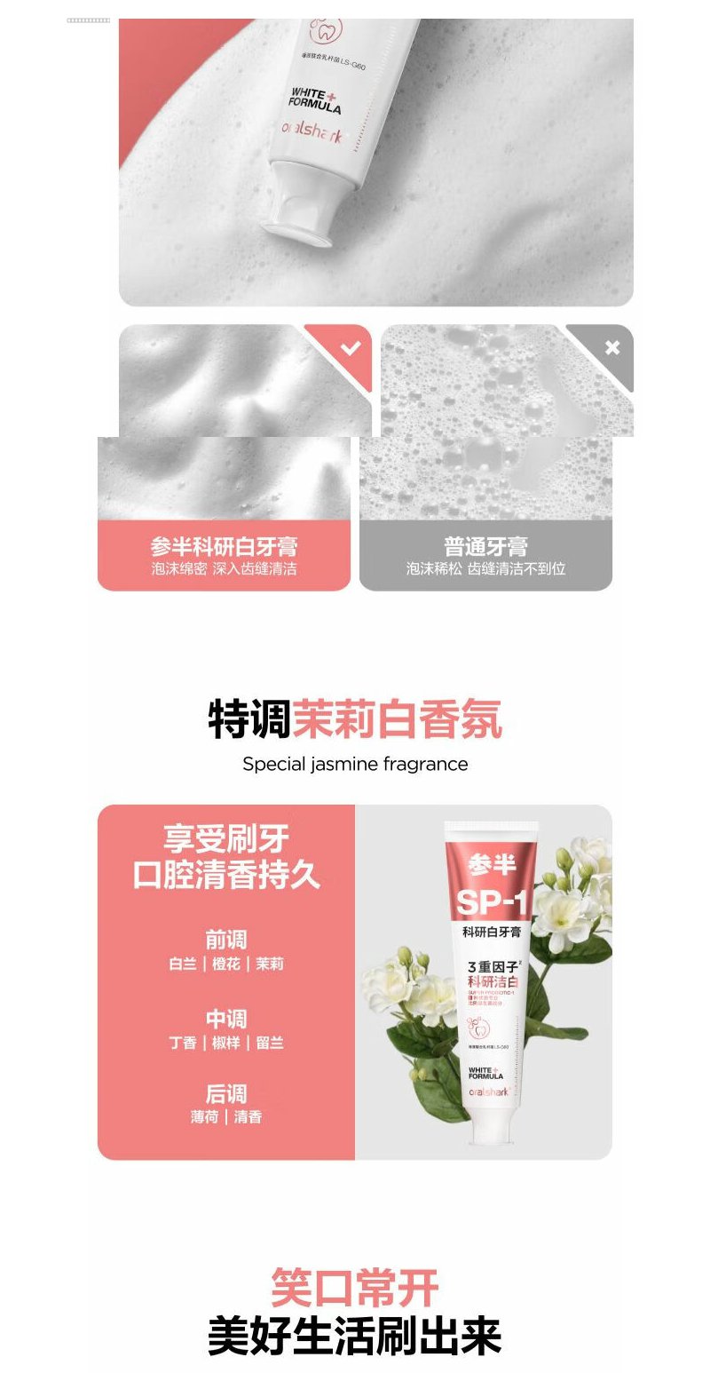 参半高山茉莉味科研洁白牙膏-180g(sp-1)