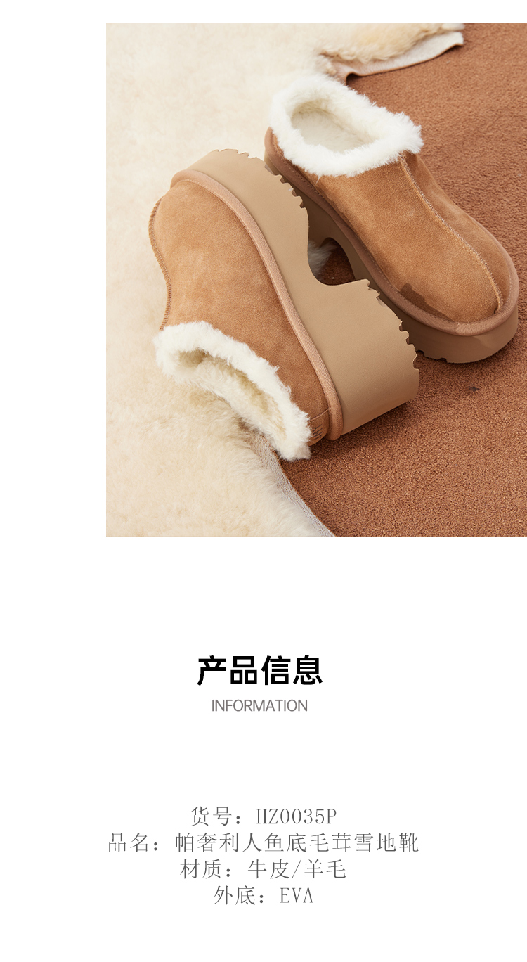 【梅花出品】帕奢利/LAMY人鱼厚底牛皮澳洲羊毛雪地靴HZ0036P