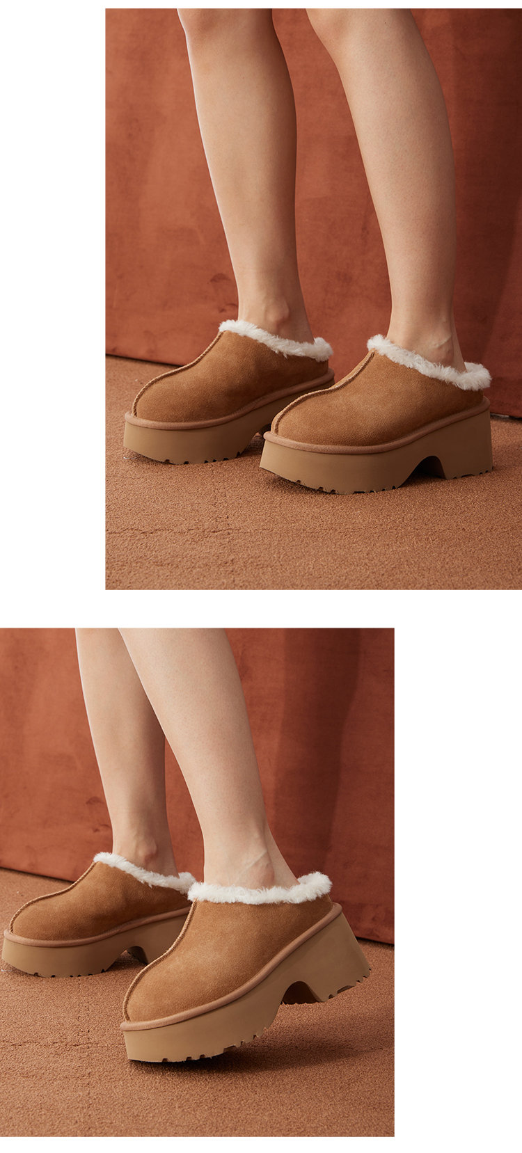 【梅花出品】帕奢利人鱼厚底牛皮澳洲羊毛毛圈毛拖HZ0035P
