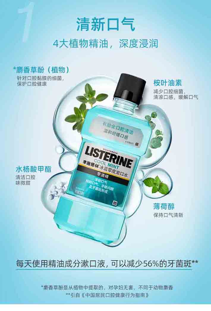 美丽市场超市李施德林冰蓝零度漱口水250ml 买一送一
