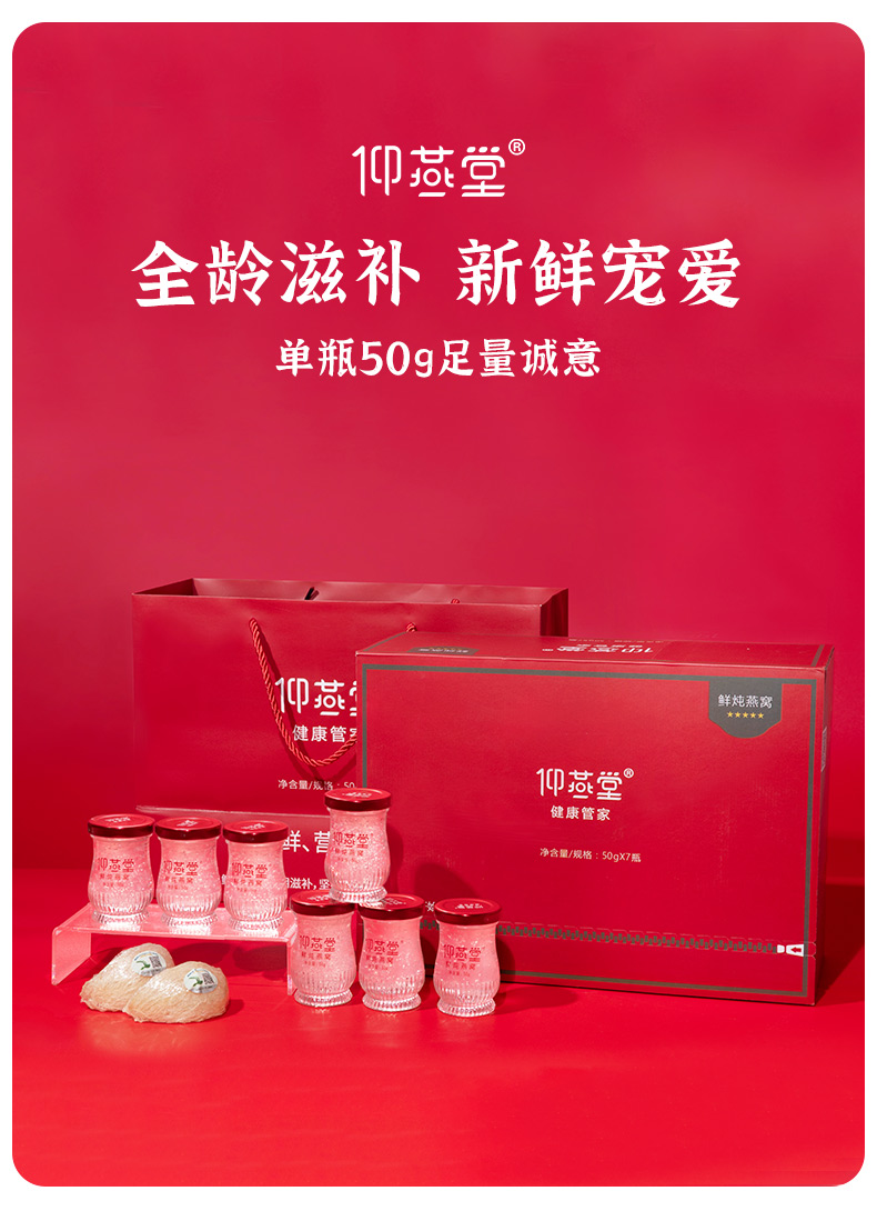 【顺丰包邮 冷鲜直达】仰燕堂鲜炖燕窝 精选印尼燕窝 零添加无腹担 50g*7瓶 三八妇女节女神女生节礼盒礼物送家人老婆送妈妈