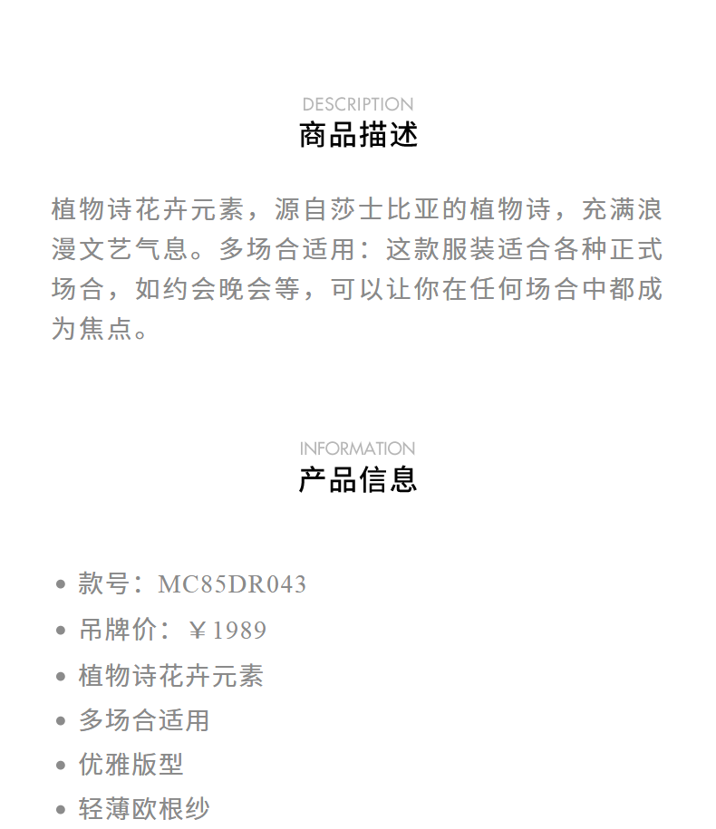 【浪漫花园-商场同款】MAXRIENY植物诗花卉印花娃娃裙甜美连衣裙(货号:MC85DR043)