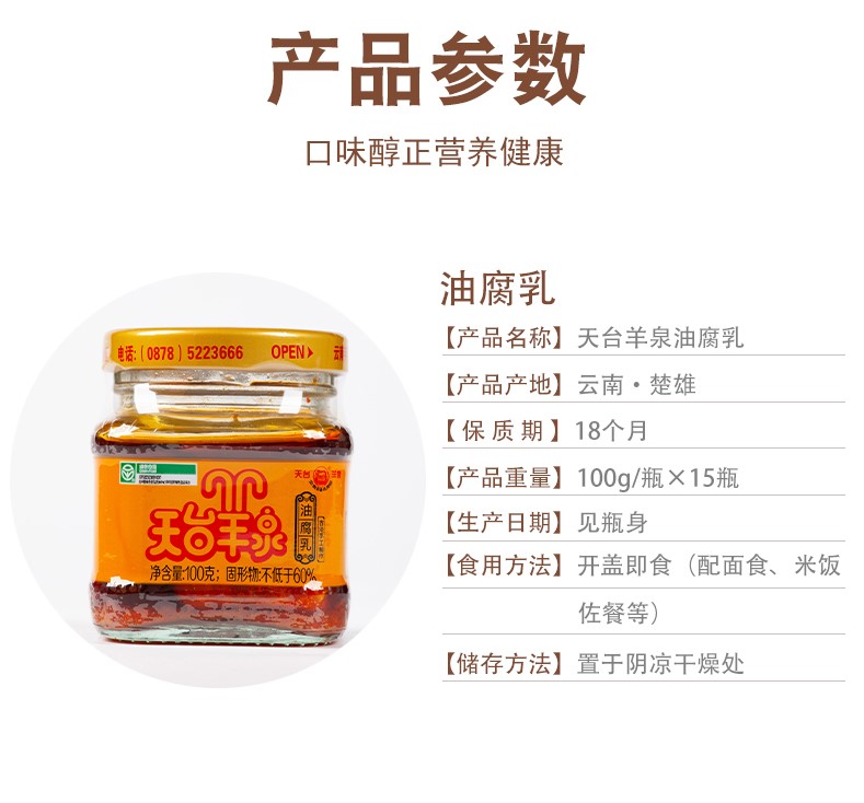 【云南特产】天台羊泉油腐乳100克15瓶装