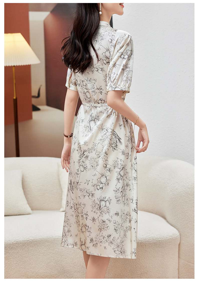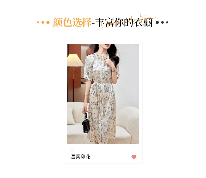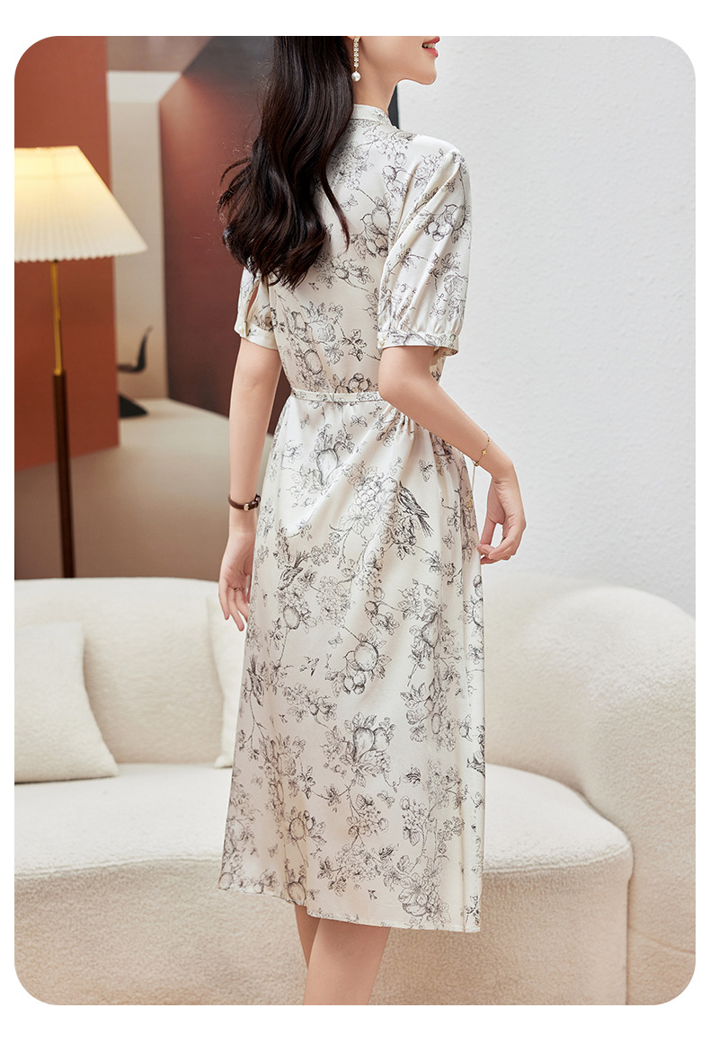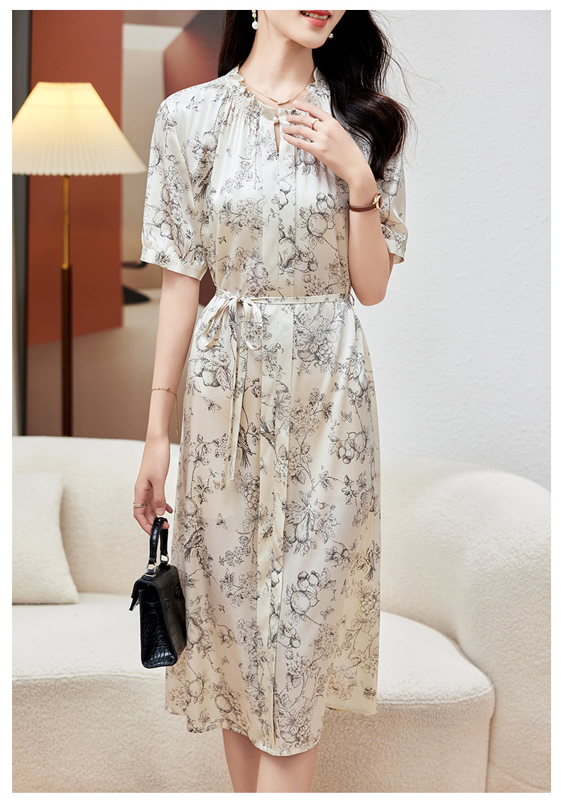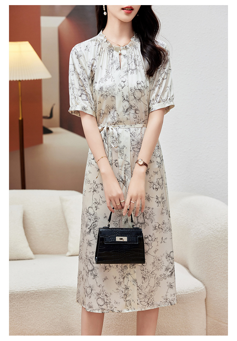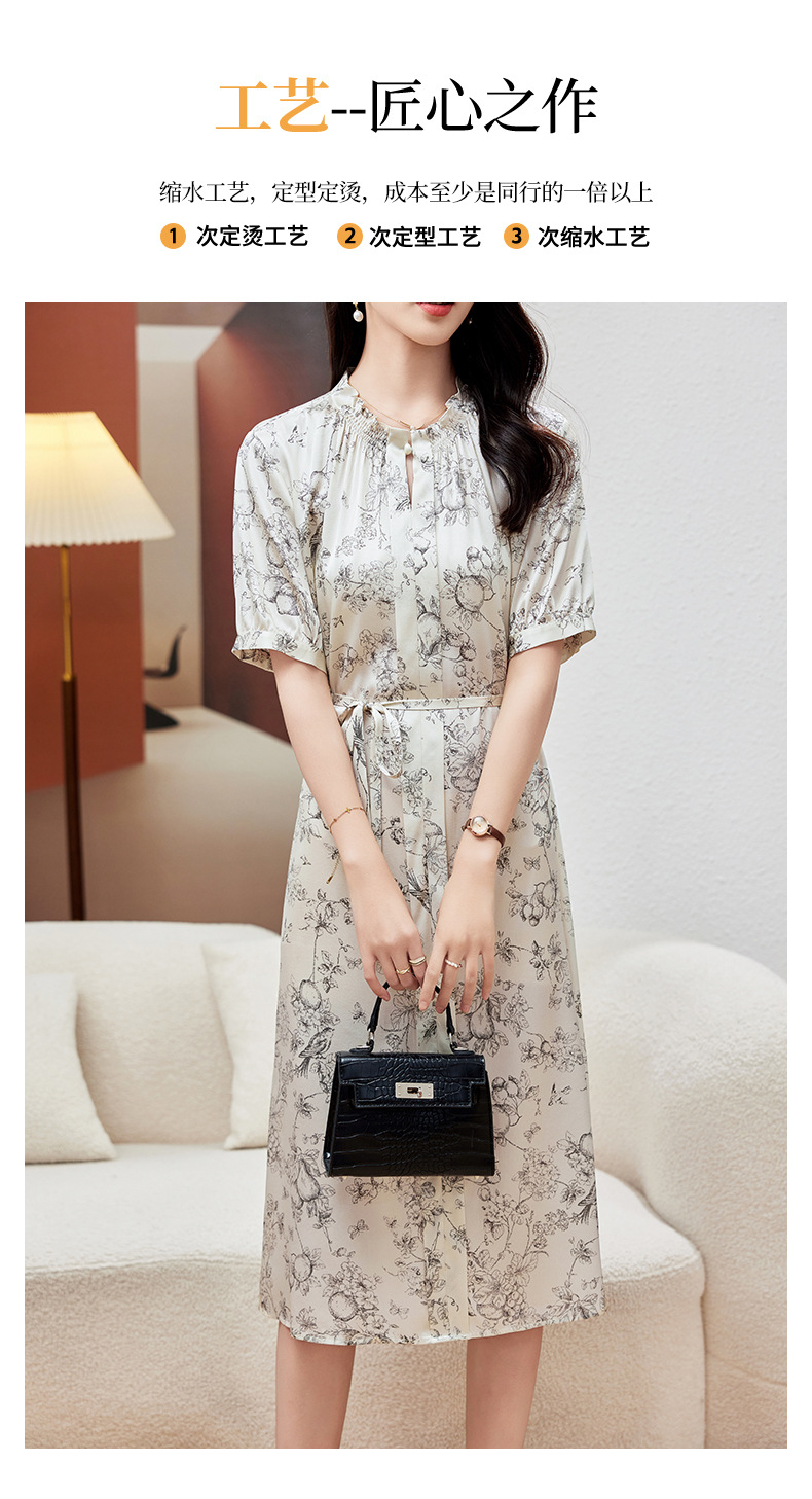 KQ-PZ09150 19姆米重磅斜纹绸桑蚕丝2025夏新款法式温柔风碎花真丝短袖连衣裙