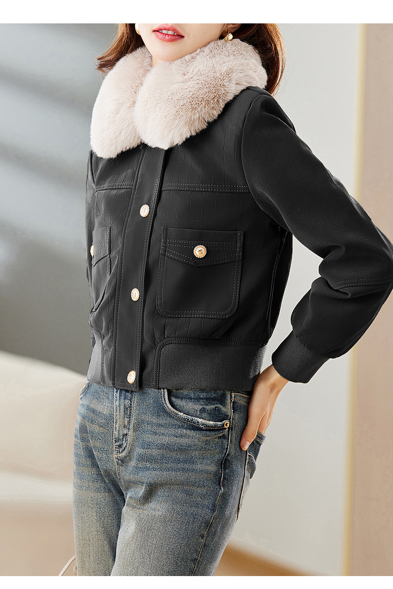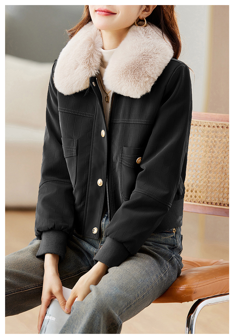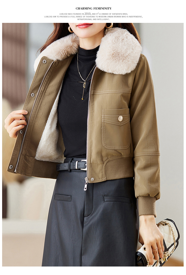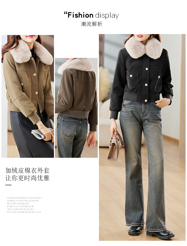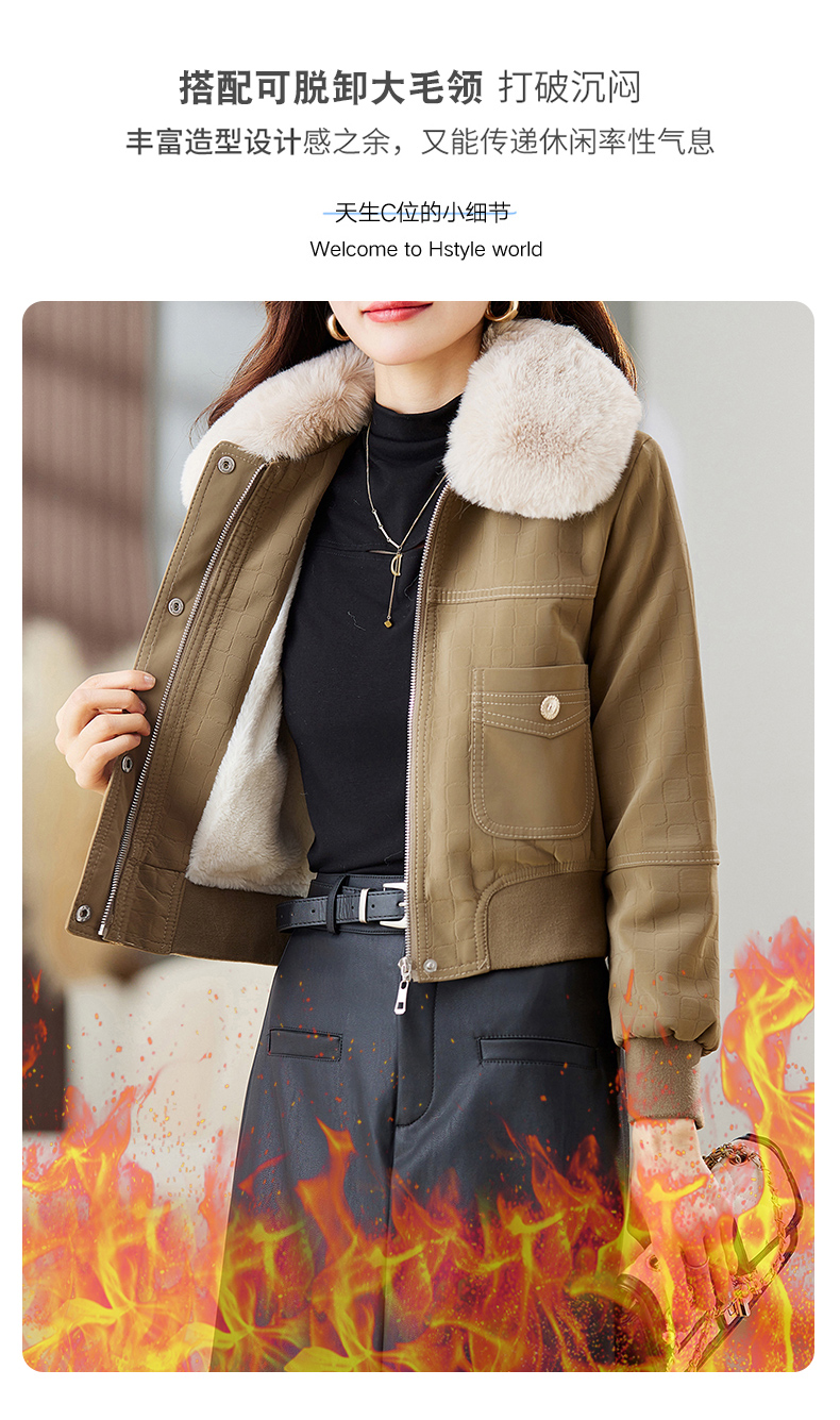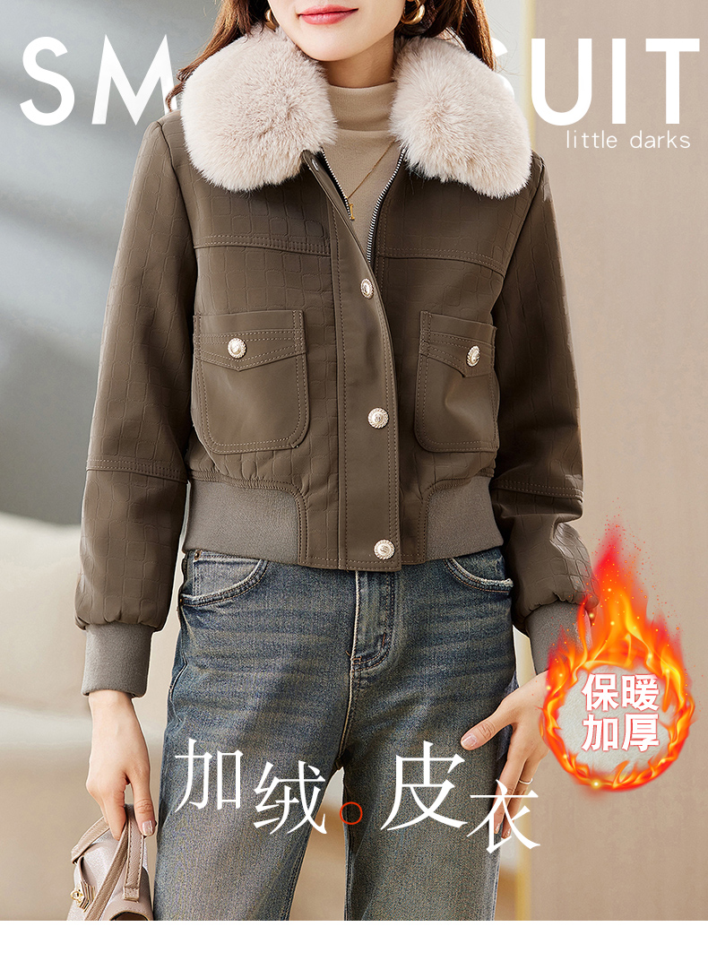 冬季新款,加绒皮夹克外套女短款时尚小款机车服加棉皮衣小棉服HR-JNNS23198A