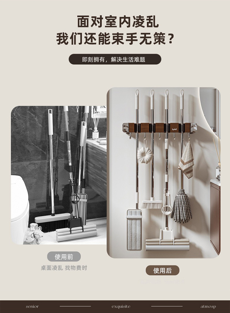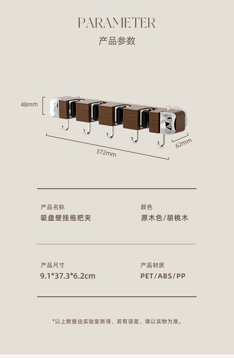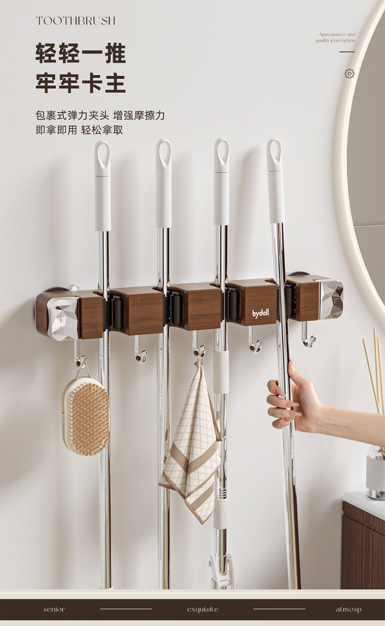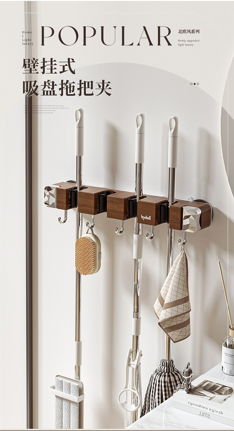 摩登主妇拖把壁挂夹吸盘木纹挂钩免打孔强力承受门后浴室无痕粘钩