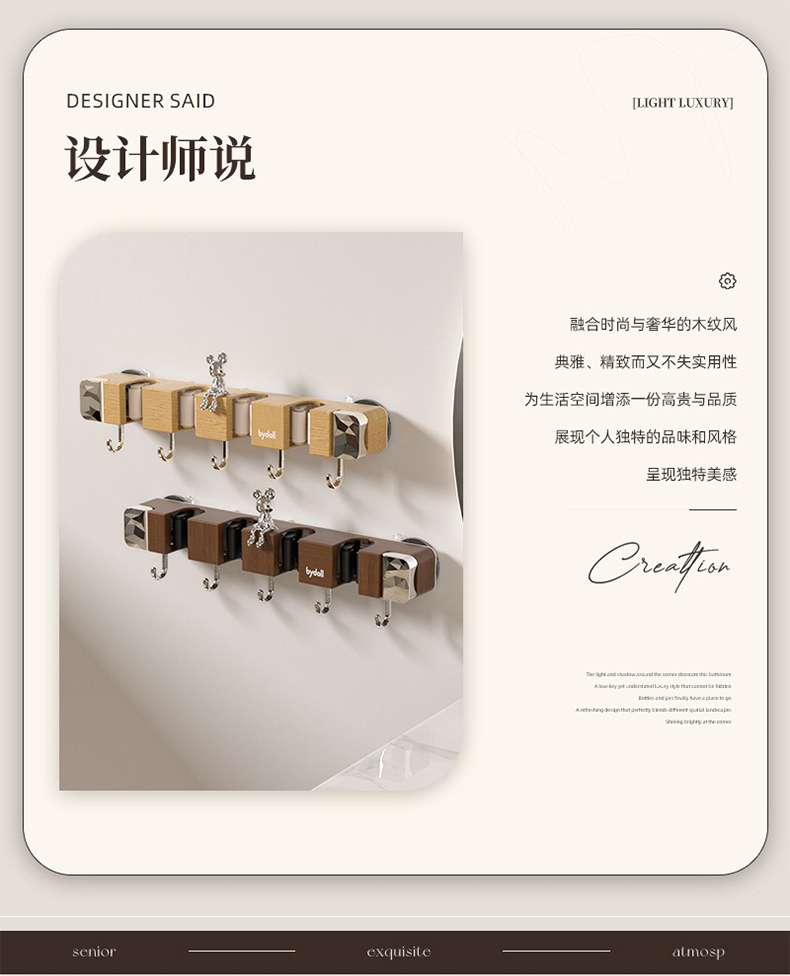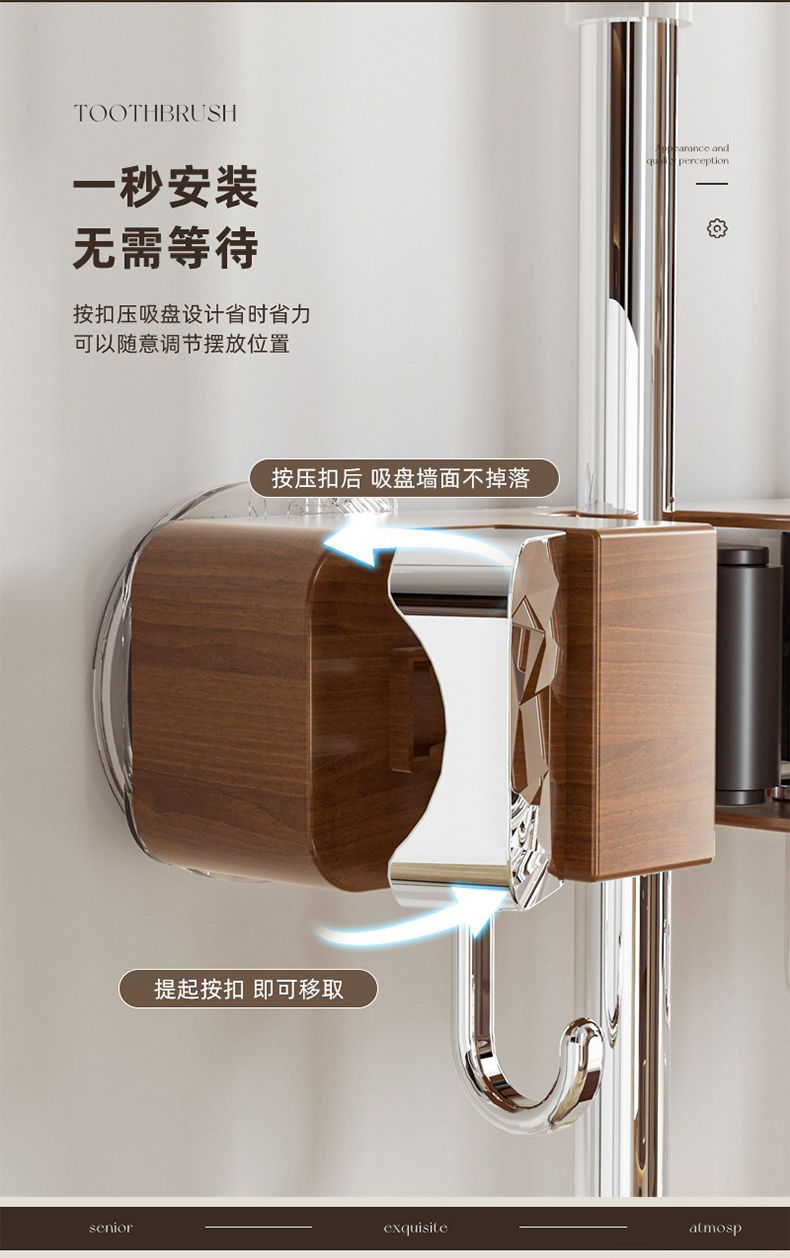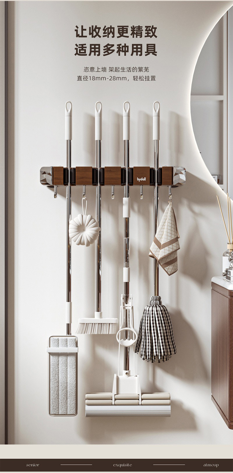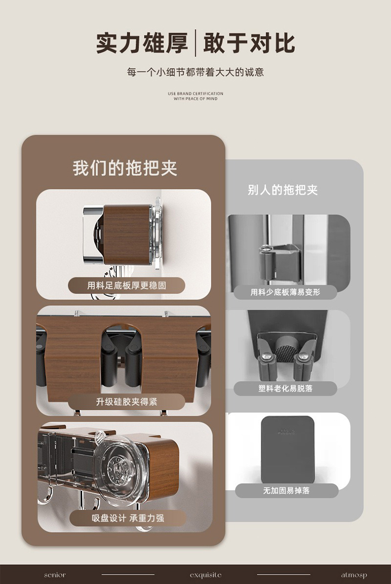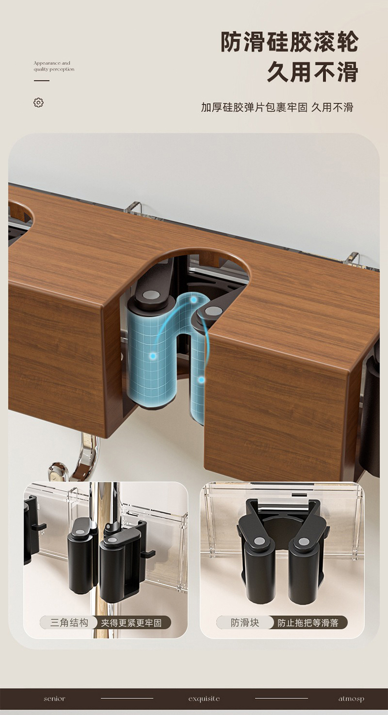 摩登主妇拖把壁挂夹吸盘木纹挂钩免打孔强力承受门后浴室无痕粘钩