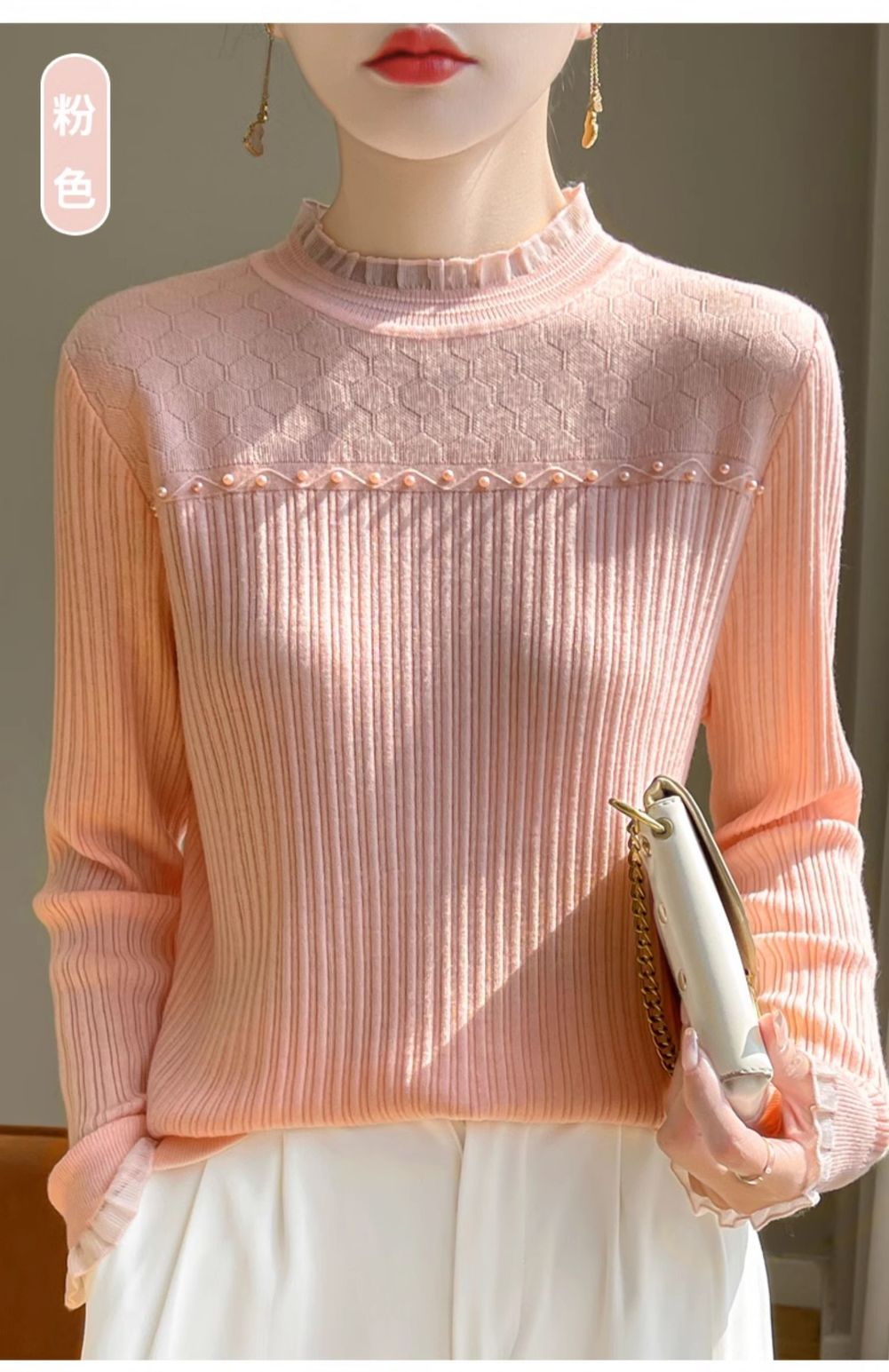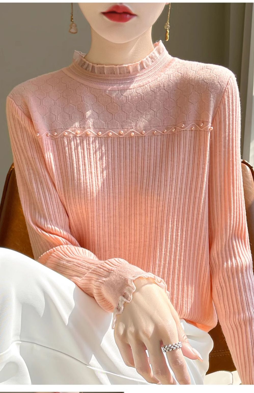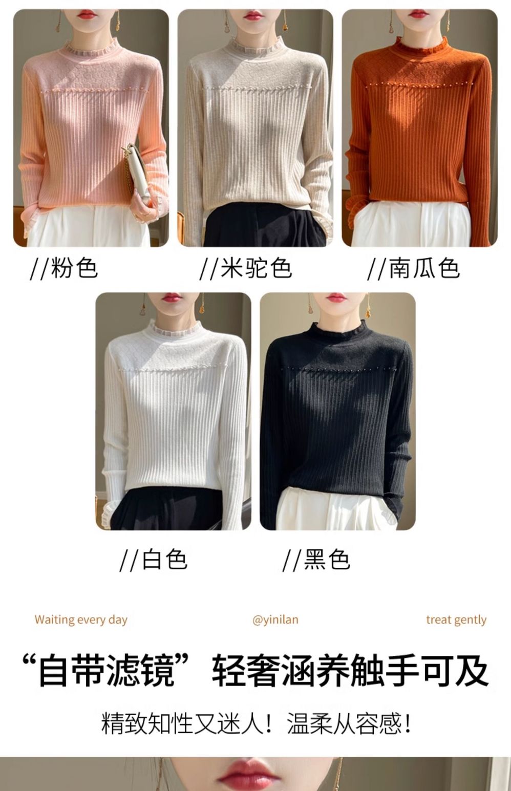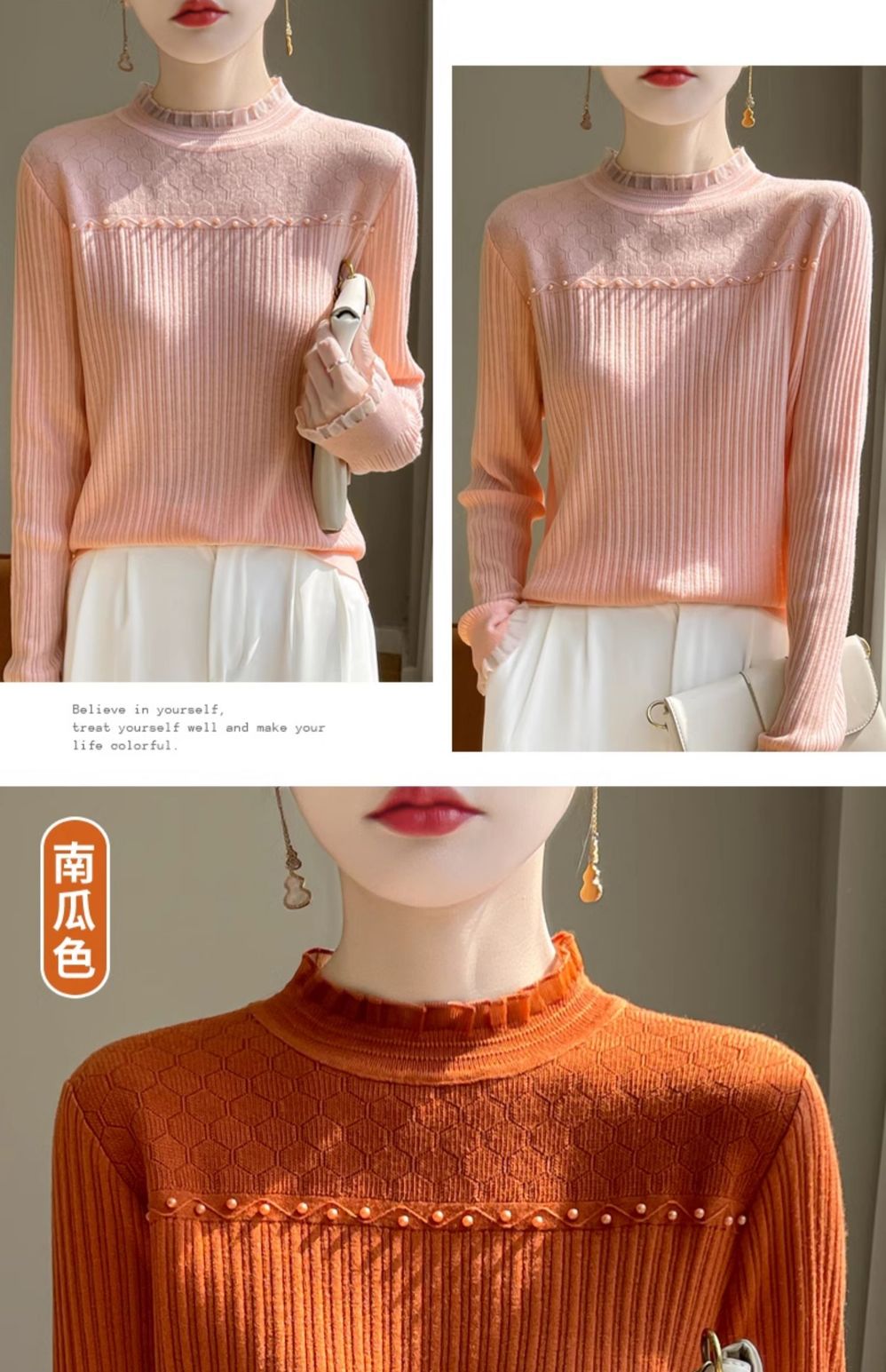 佰威斯利新年春节红蕾丝打底衫女新款春秋内搭洋气5色可选钉珠针织上衣大码女装秋冬毛衣90-240斤