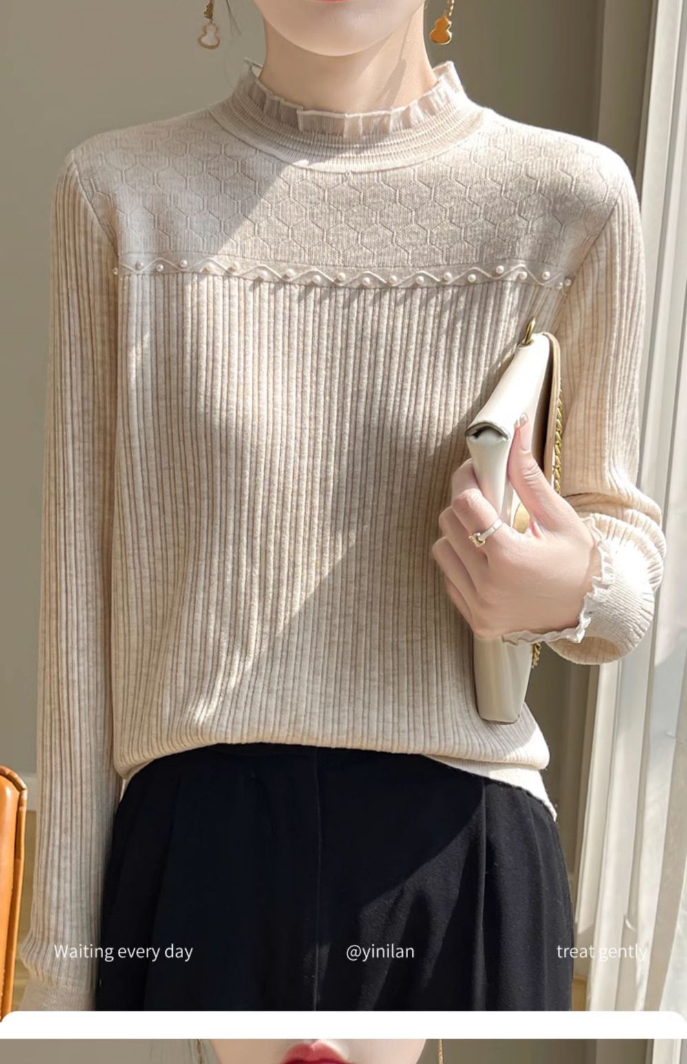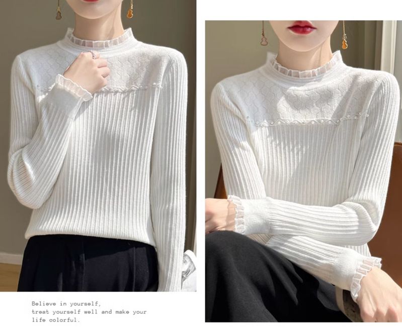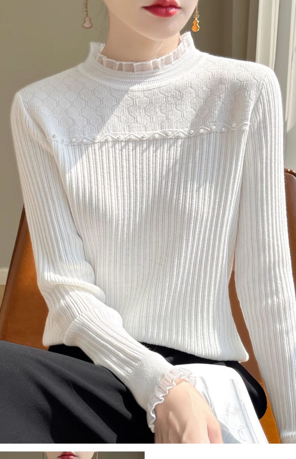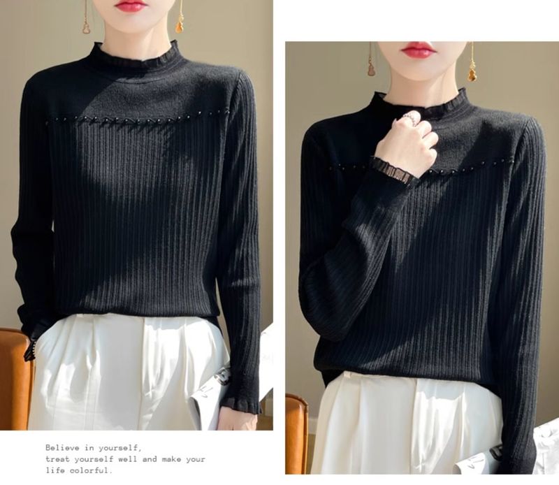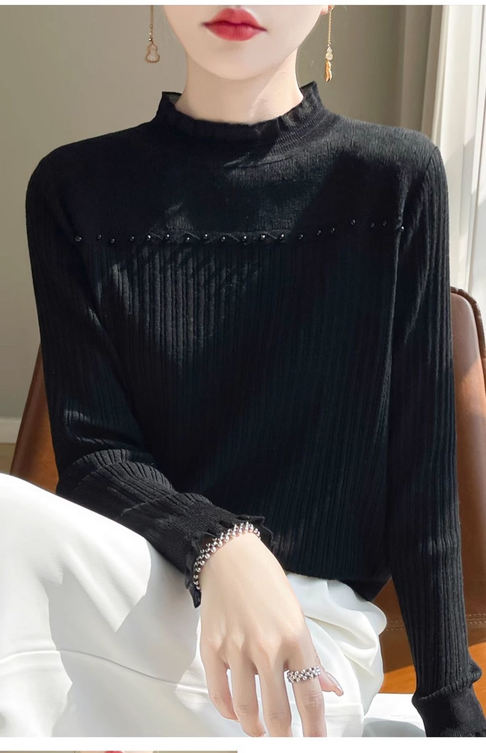 佰威斯利新年春节红蕾丝打底衫女新款春秋内搭洋气5色可选钉珠针织上衣大码女装秋冬毛衣90-240斤