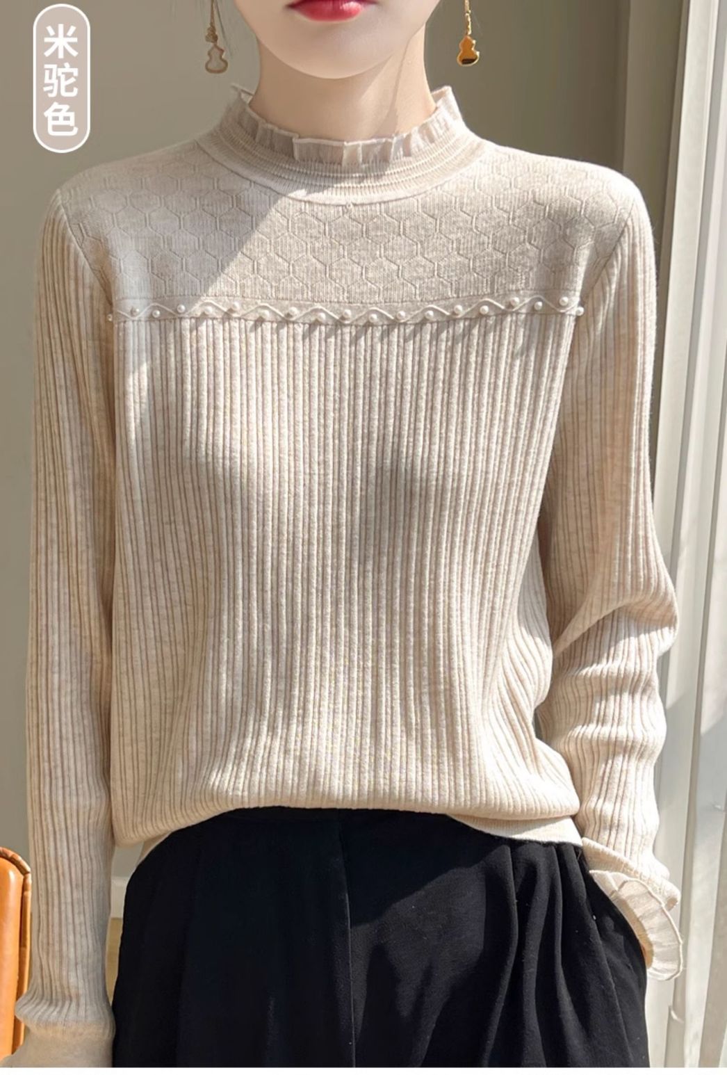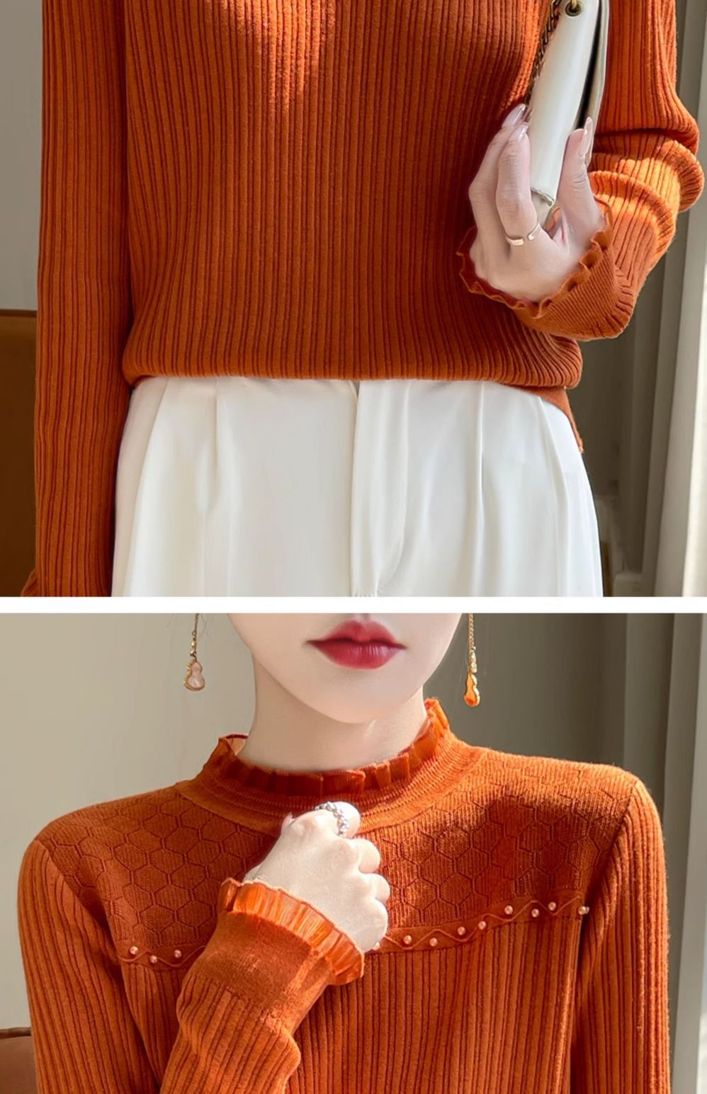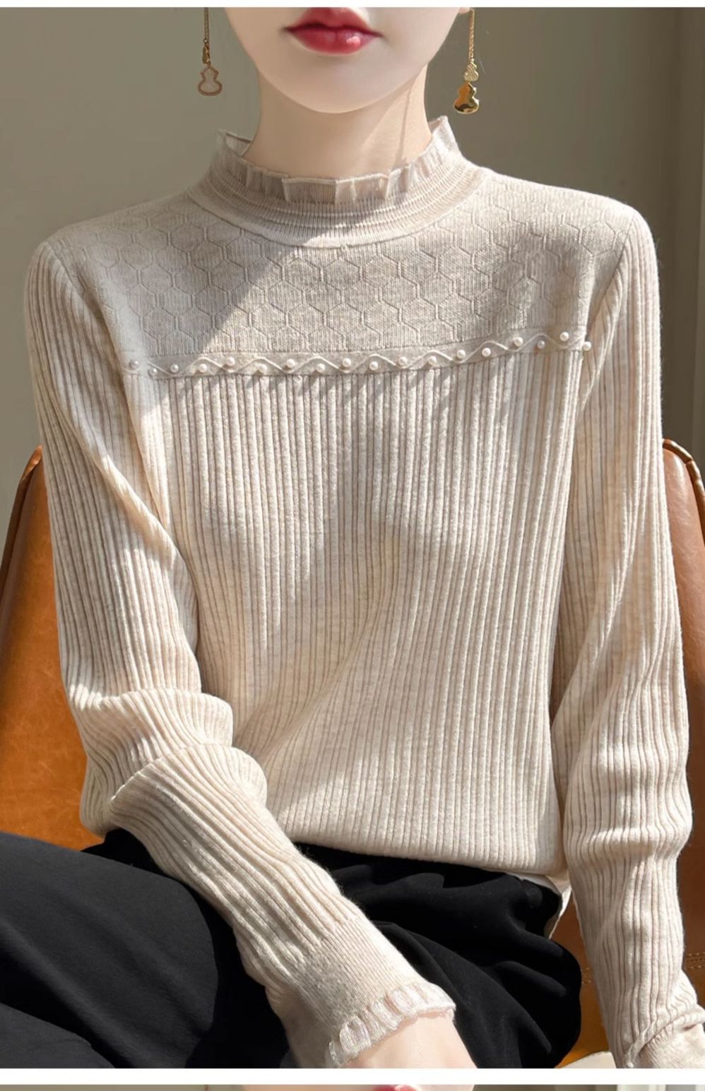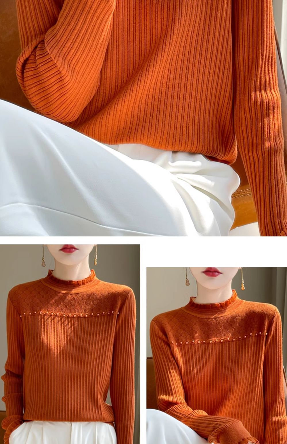 佰威斯利新年春节红蕾丝打底衫女新款春秋内搭洋气5色可选钉珠针织上衣大码女装秋冬毛衣90-240斤