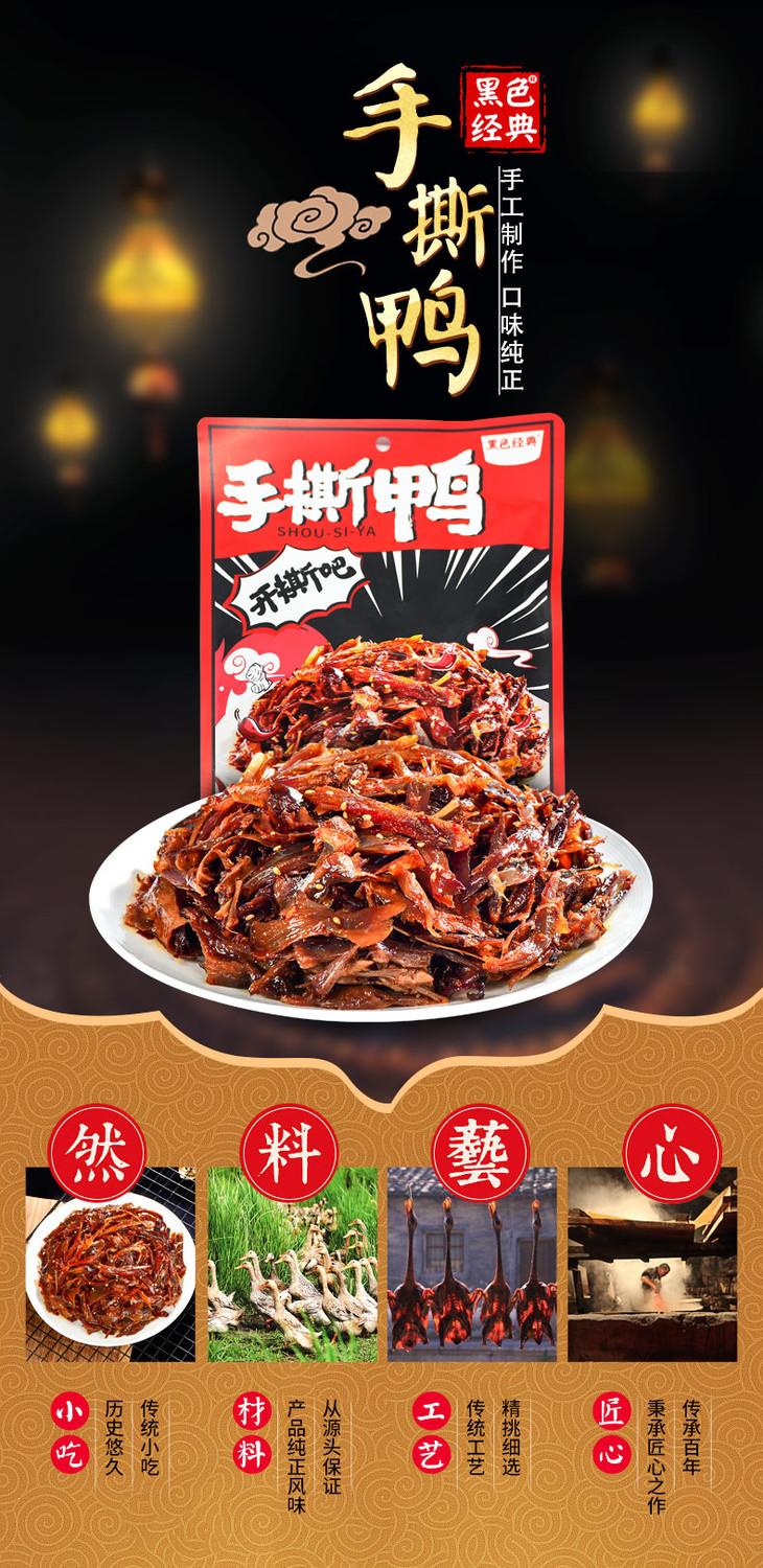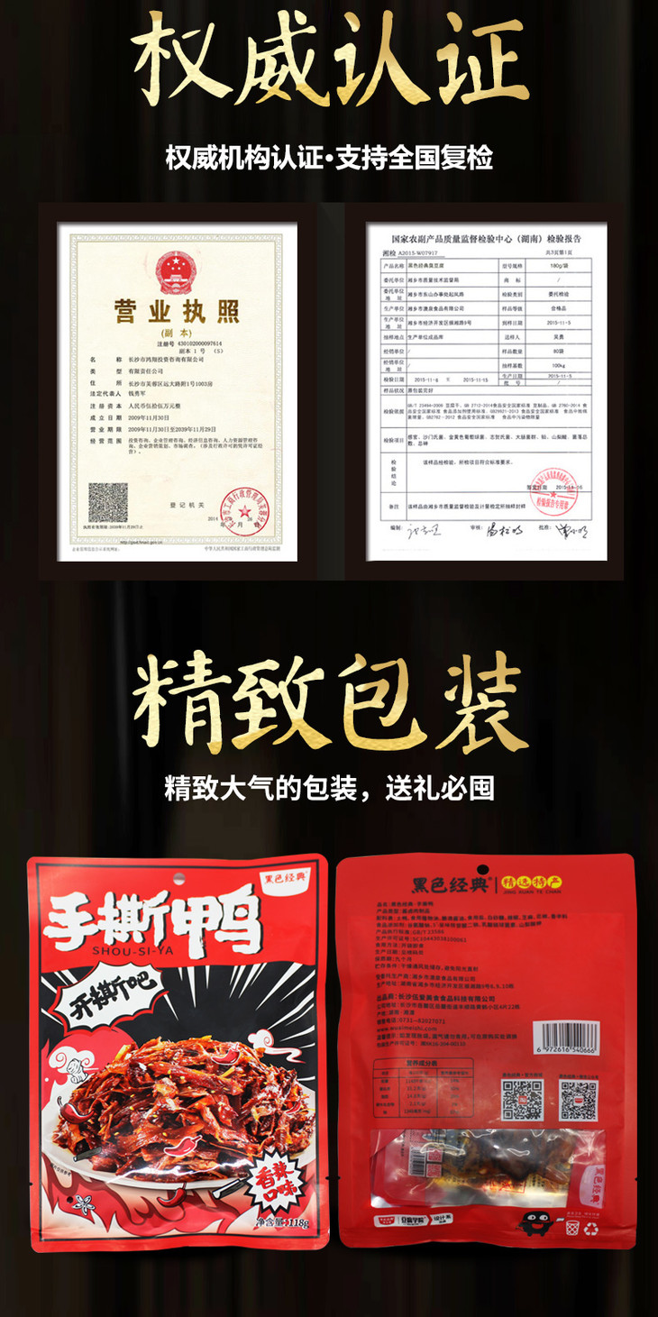 【湖南特产】黑色经典香辣手撕鸭118g/袋 纯肉无骨更过瘾